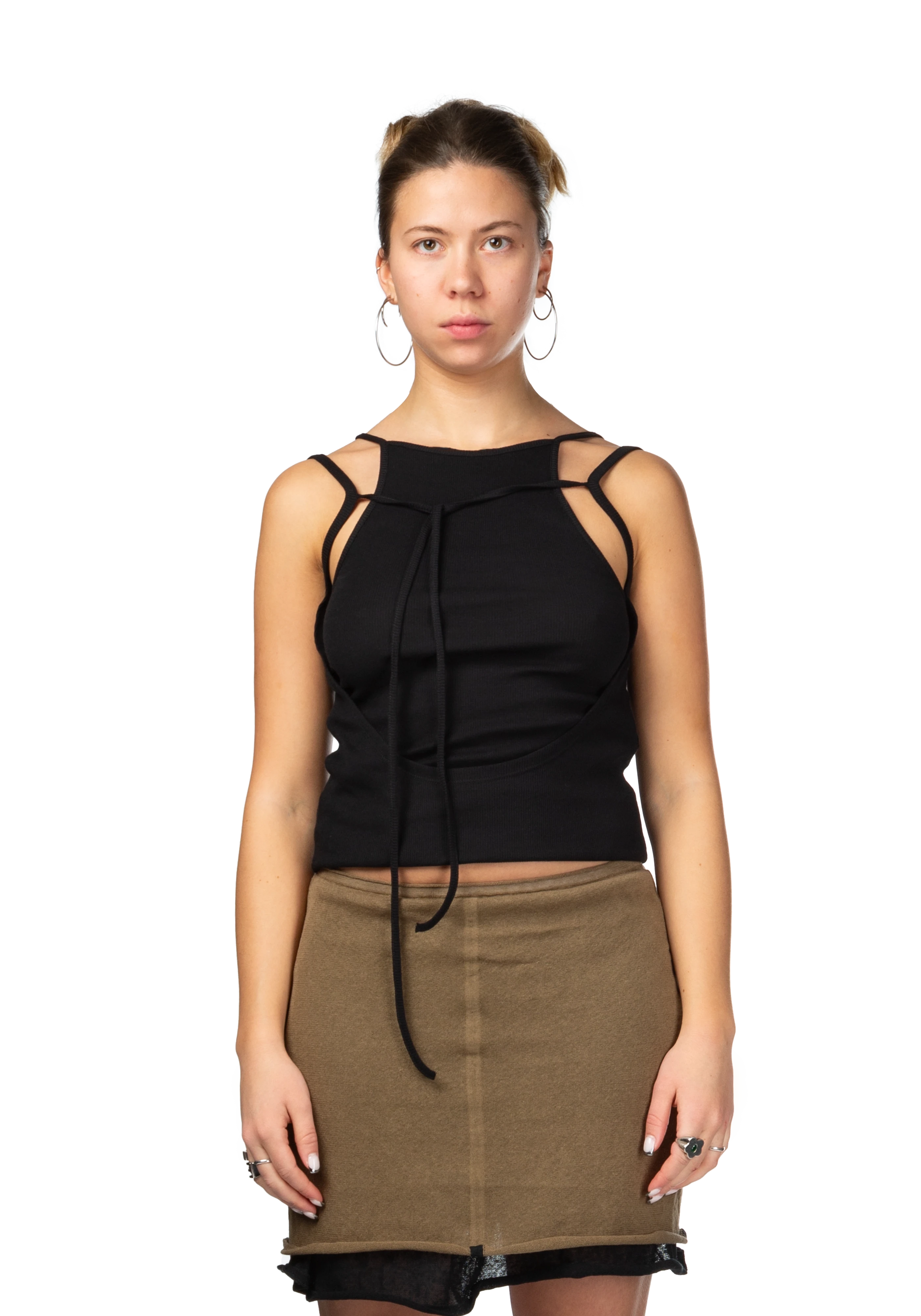 Sleeveless ribbed jersey tank top in asphalt.
