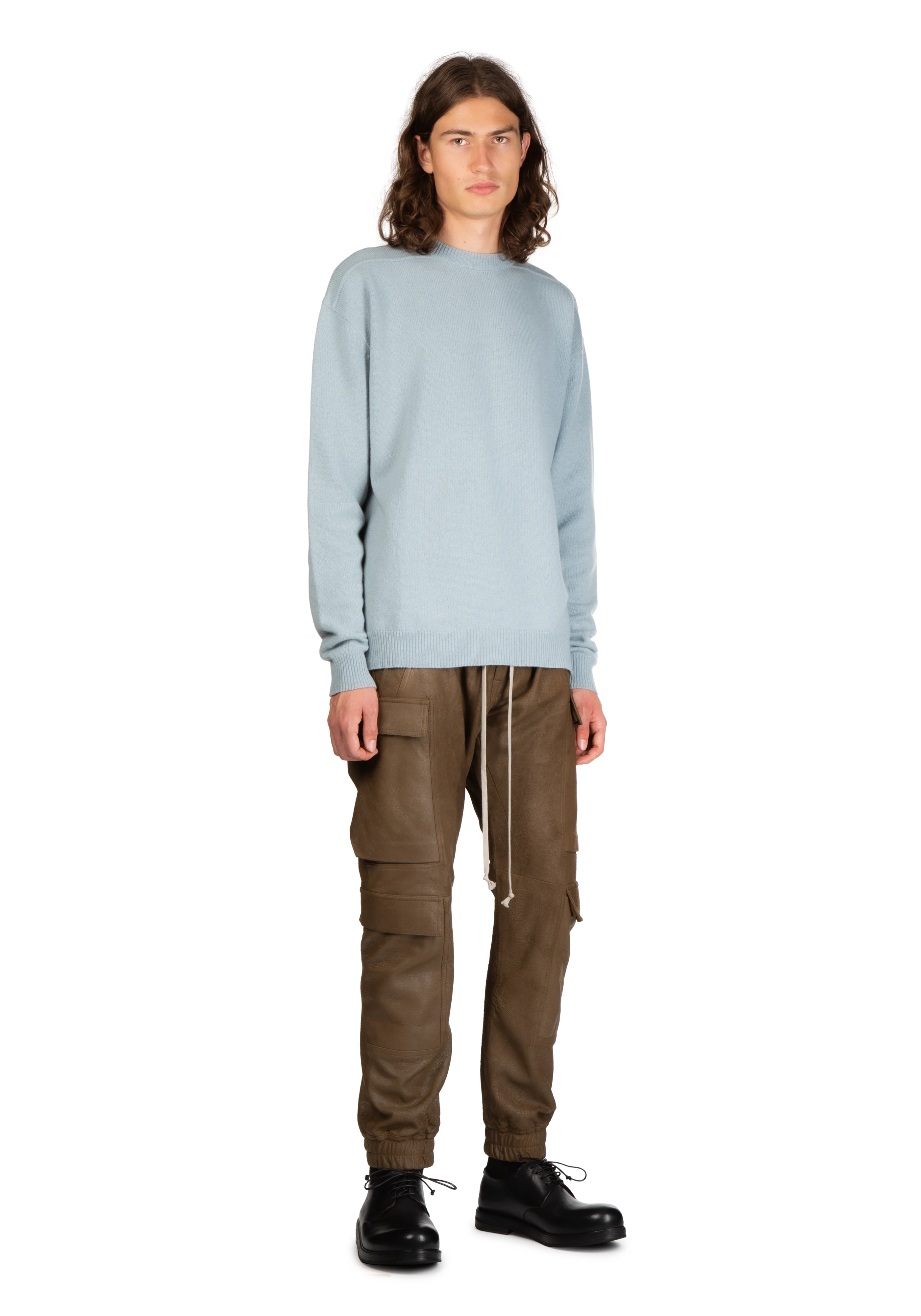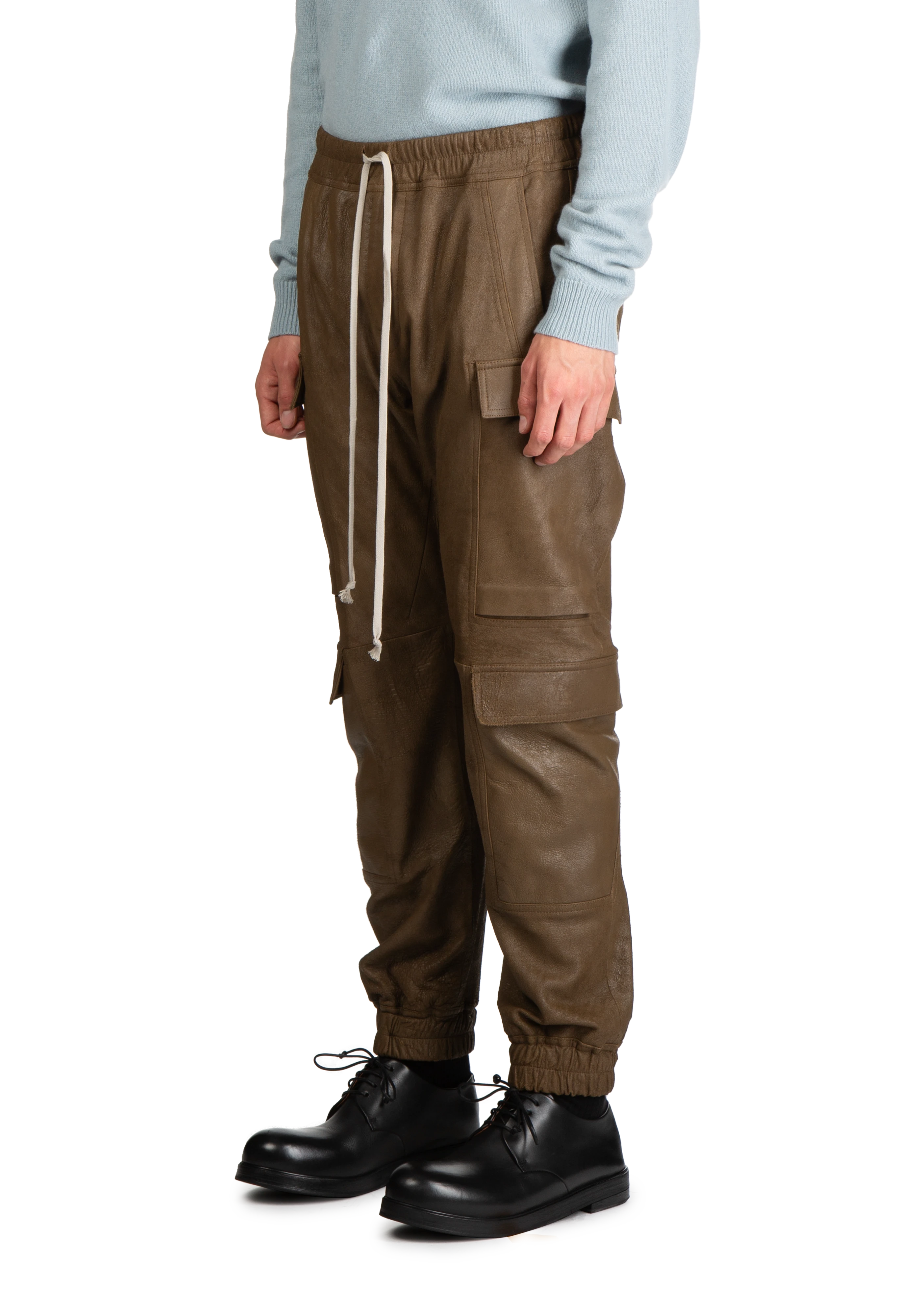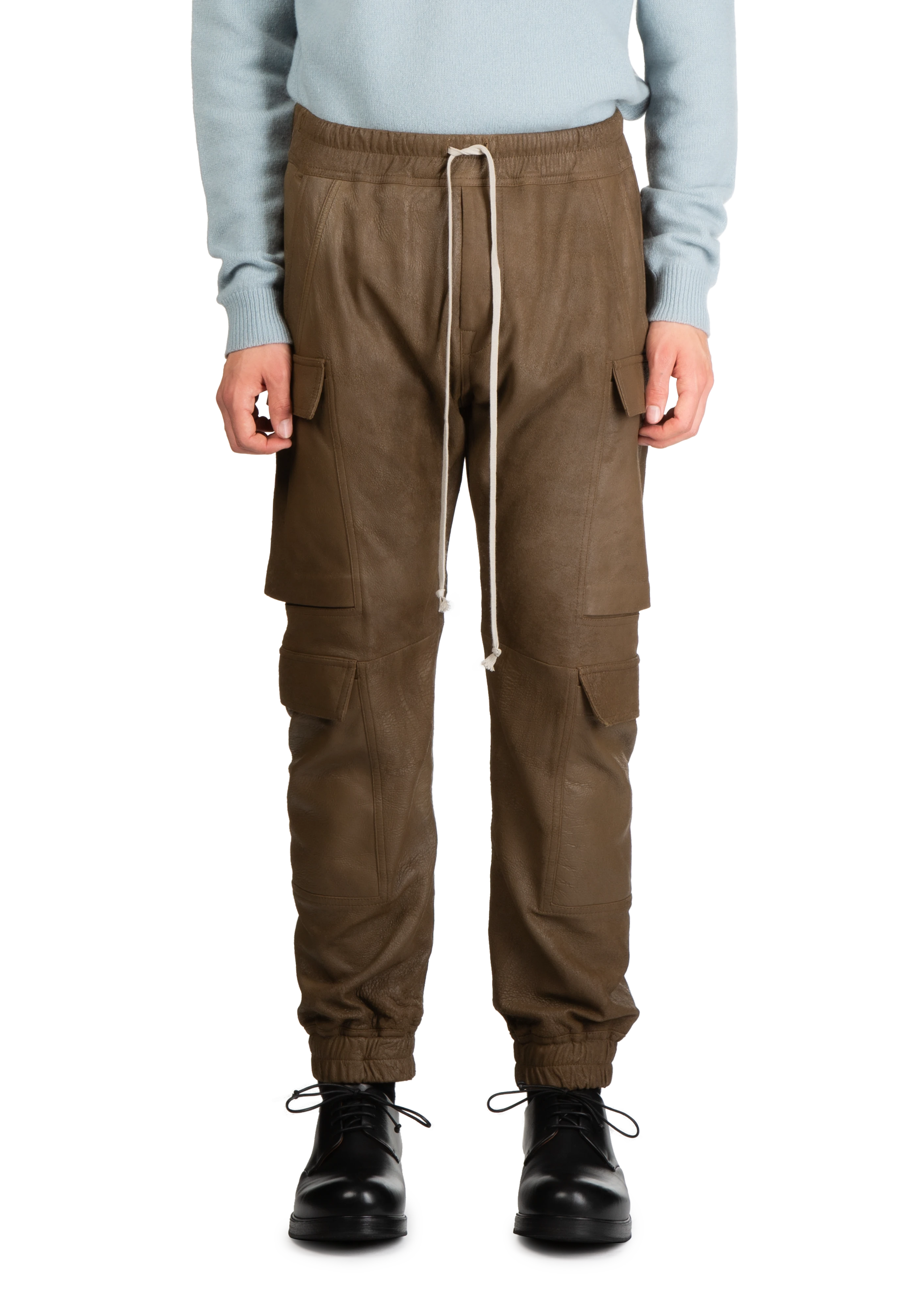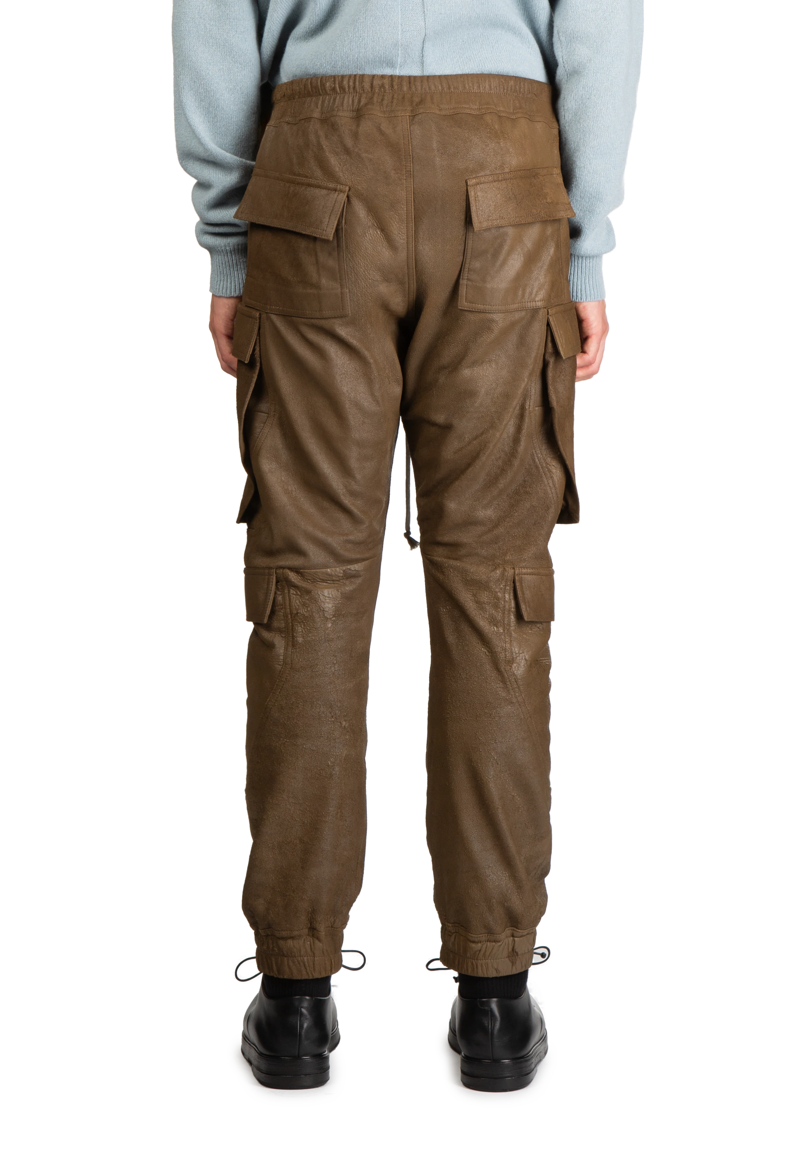 Slim-fit blister lamb leatehr cargo pants in bean.