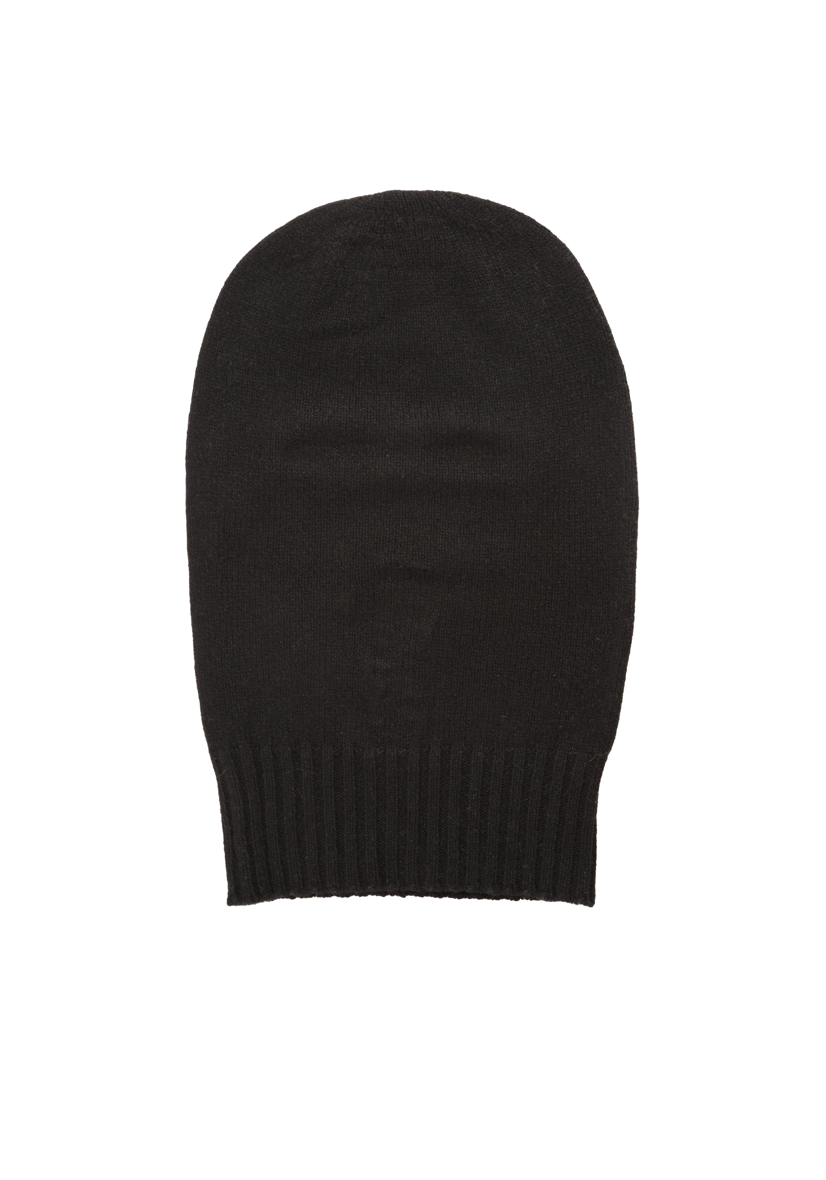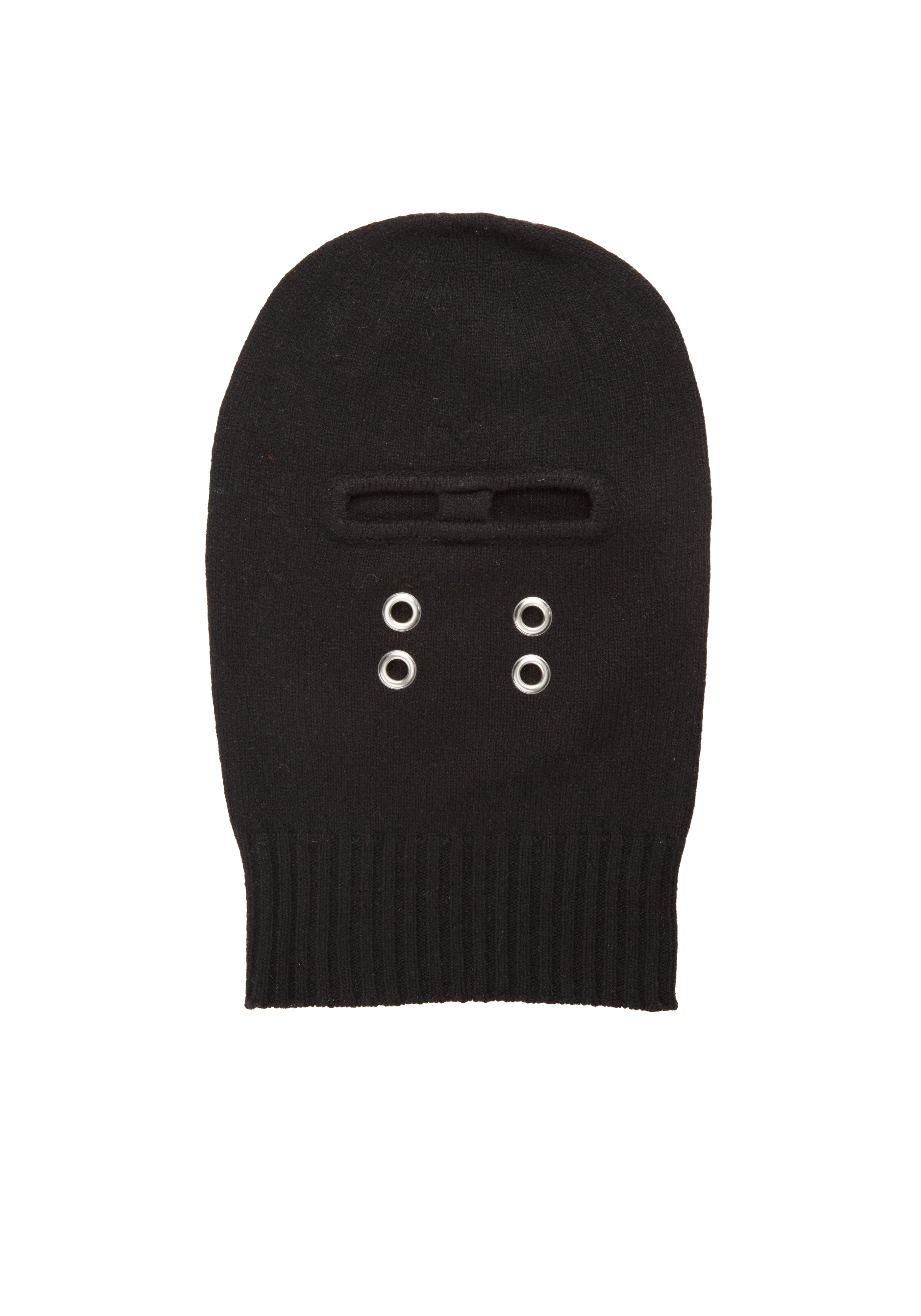 Rib knit recycled cashmere- and wool-blend balaclava in black. Metal eyelet vents at face.