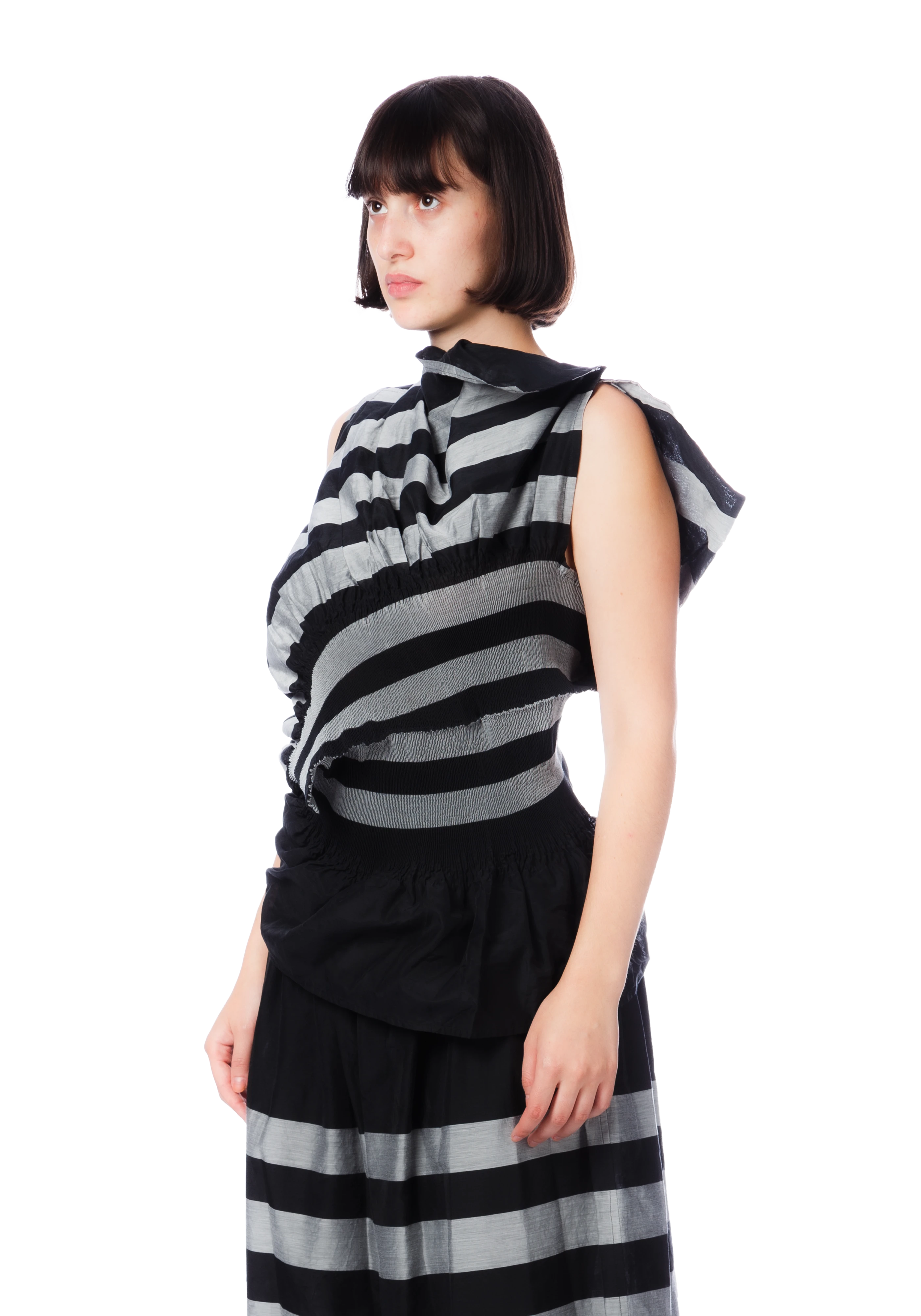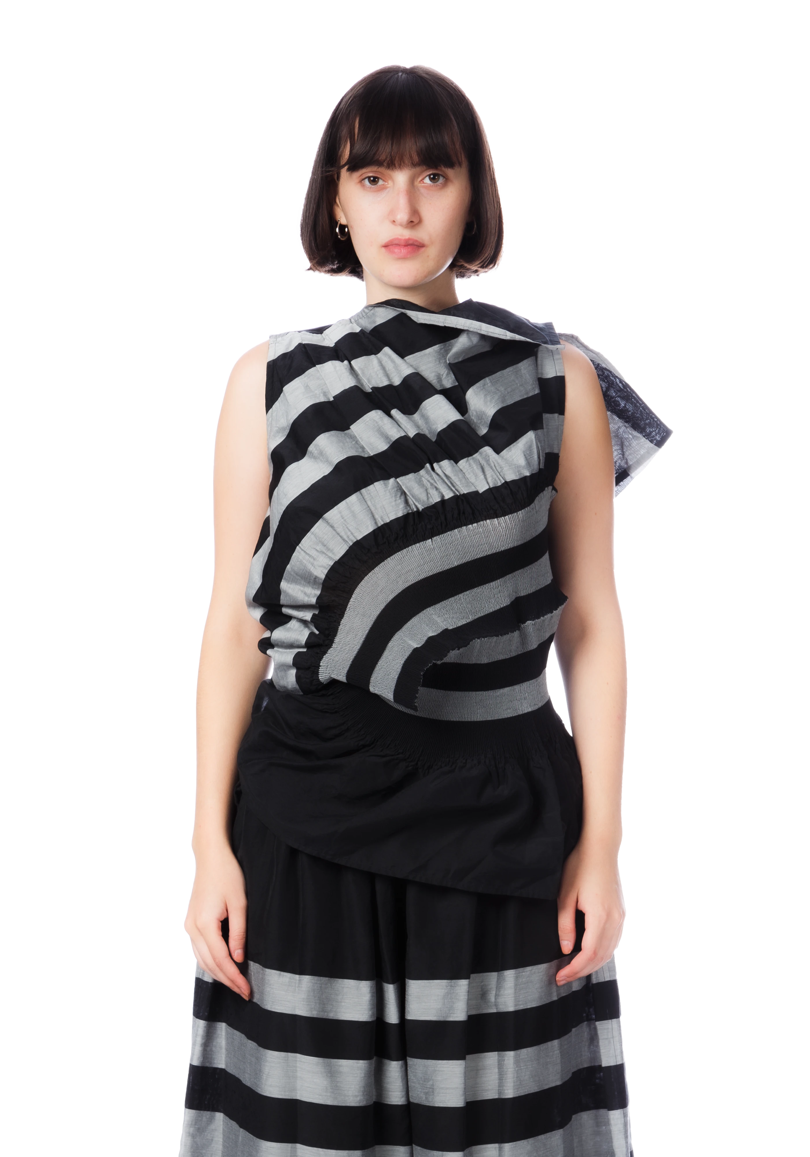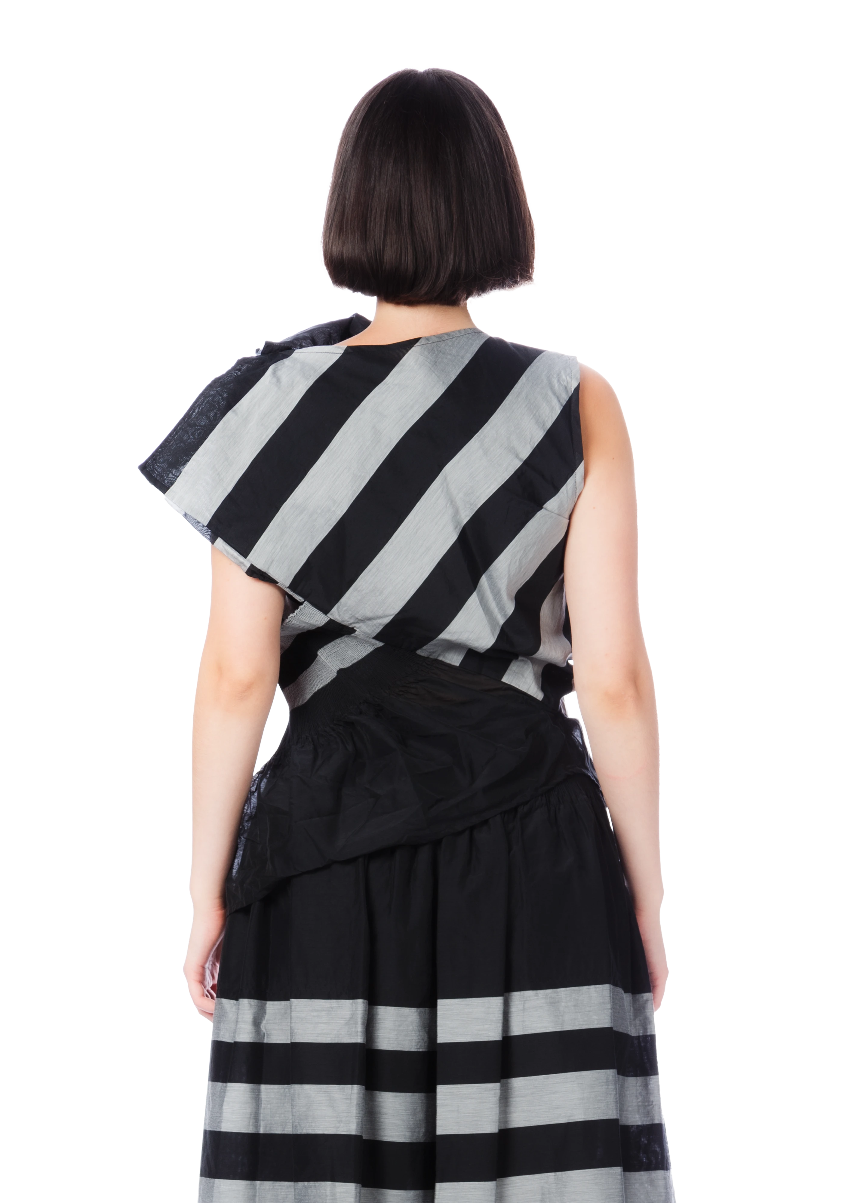 Sleeve-less plain-woven cotton shirt in black and grey.