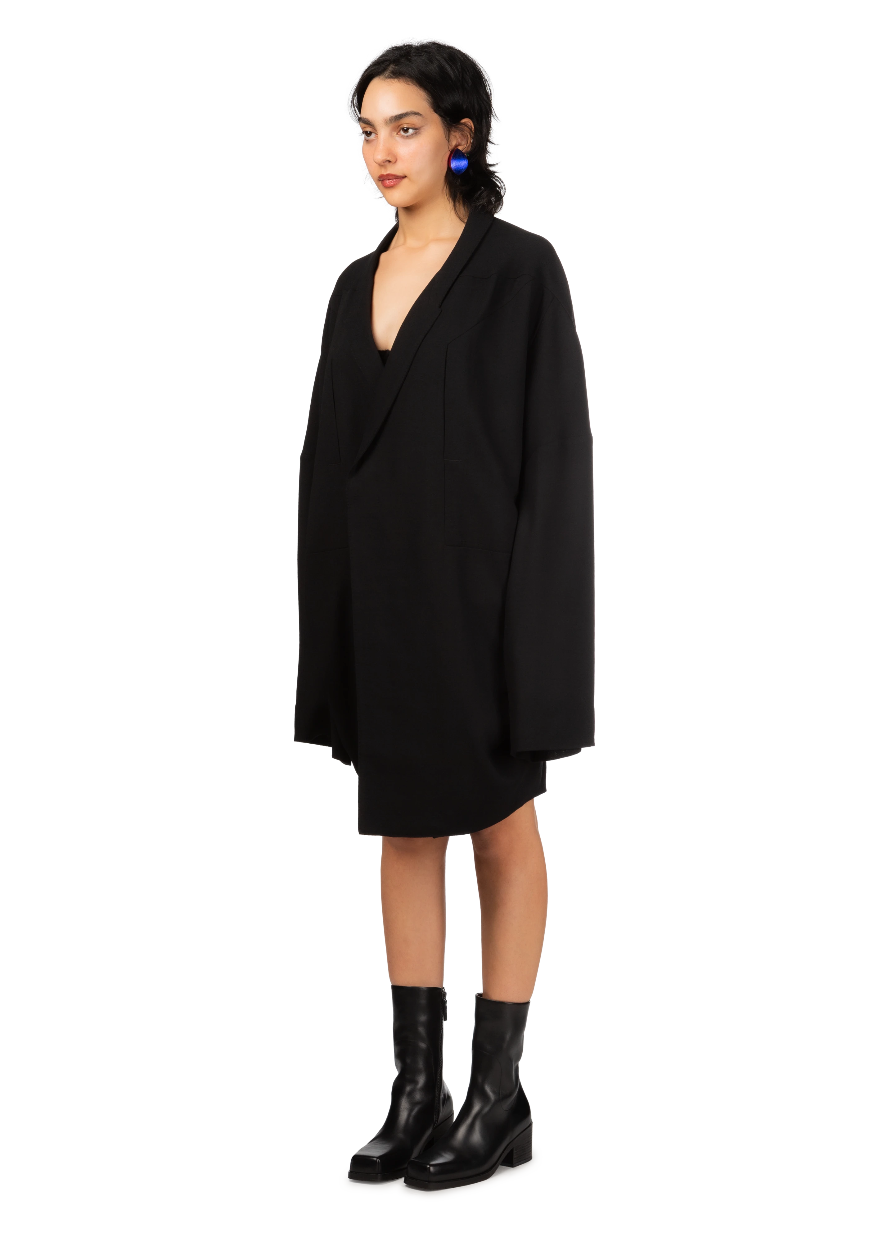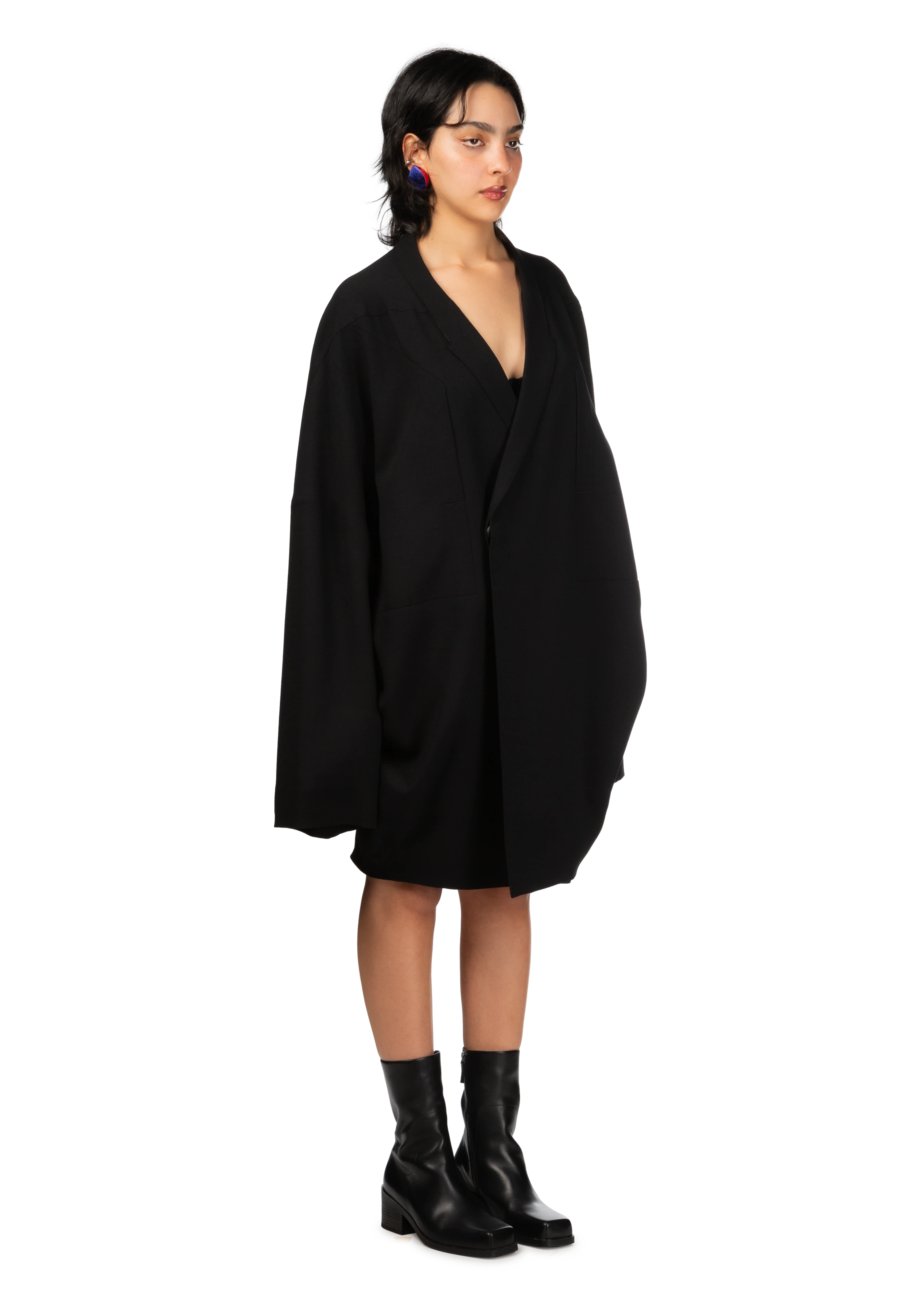 Long-sleeve virgin wool crepon jacket in black.