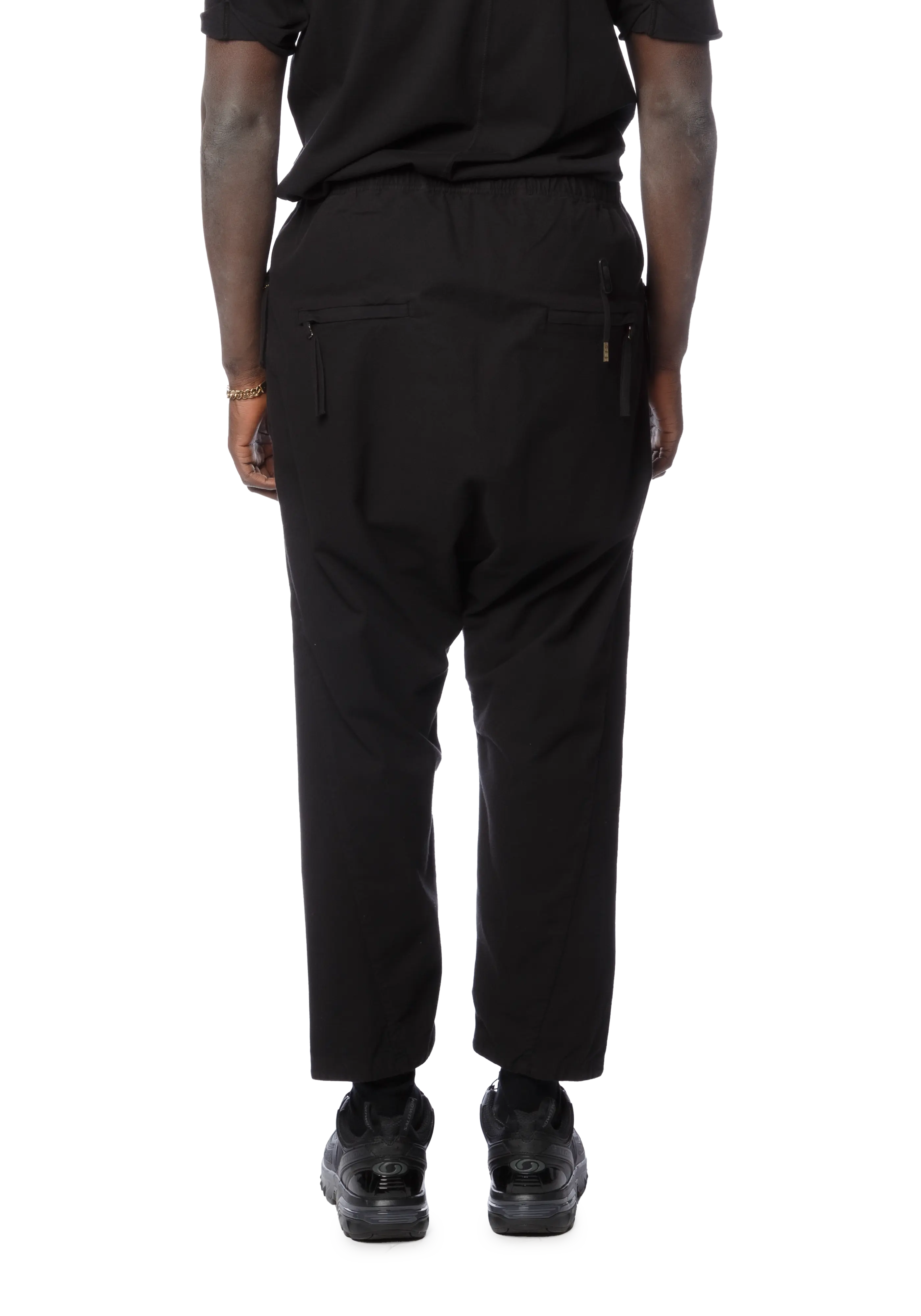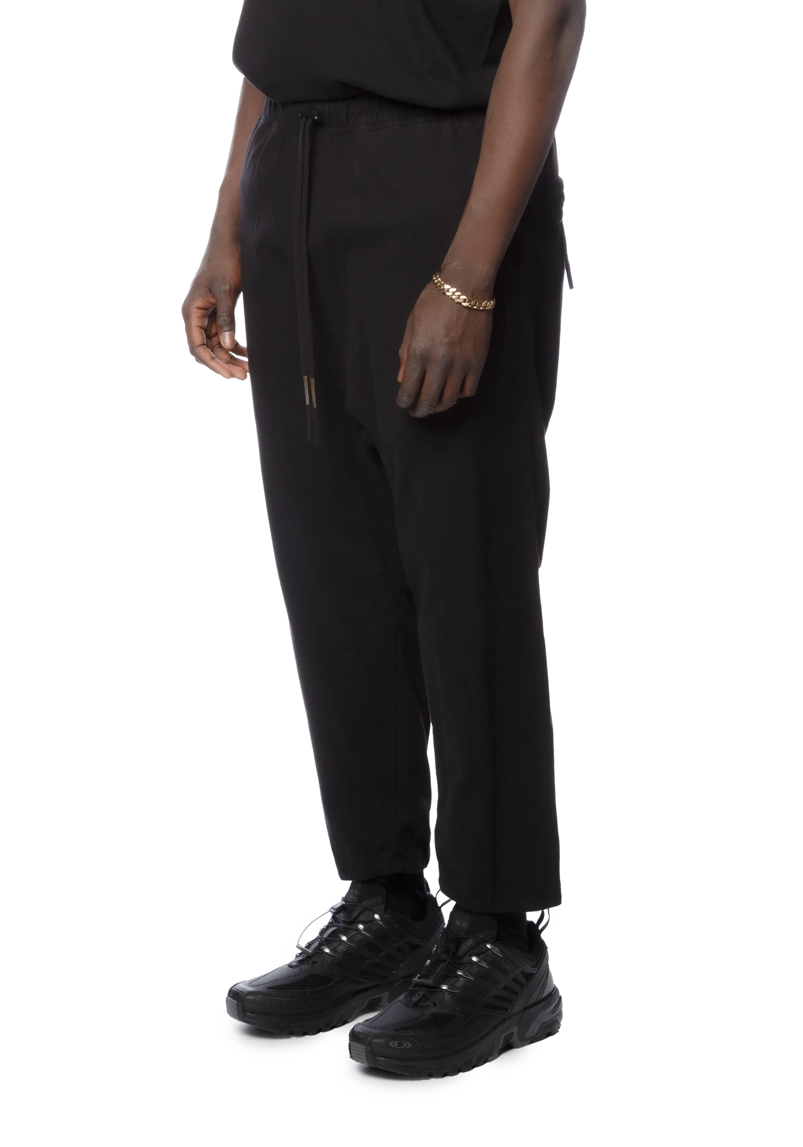 Handcrafted object-dyed cotton jersey trousers in black.