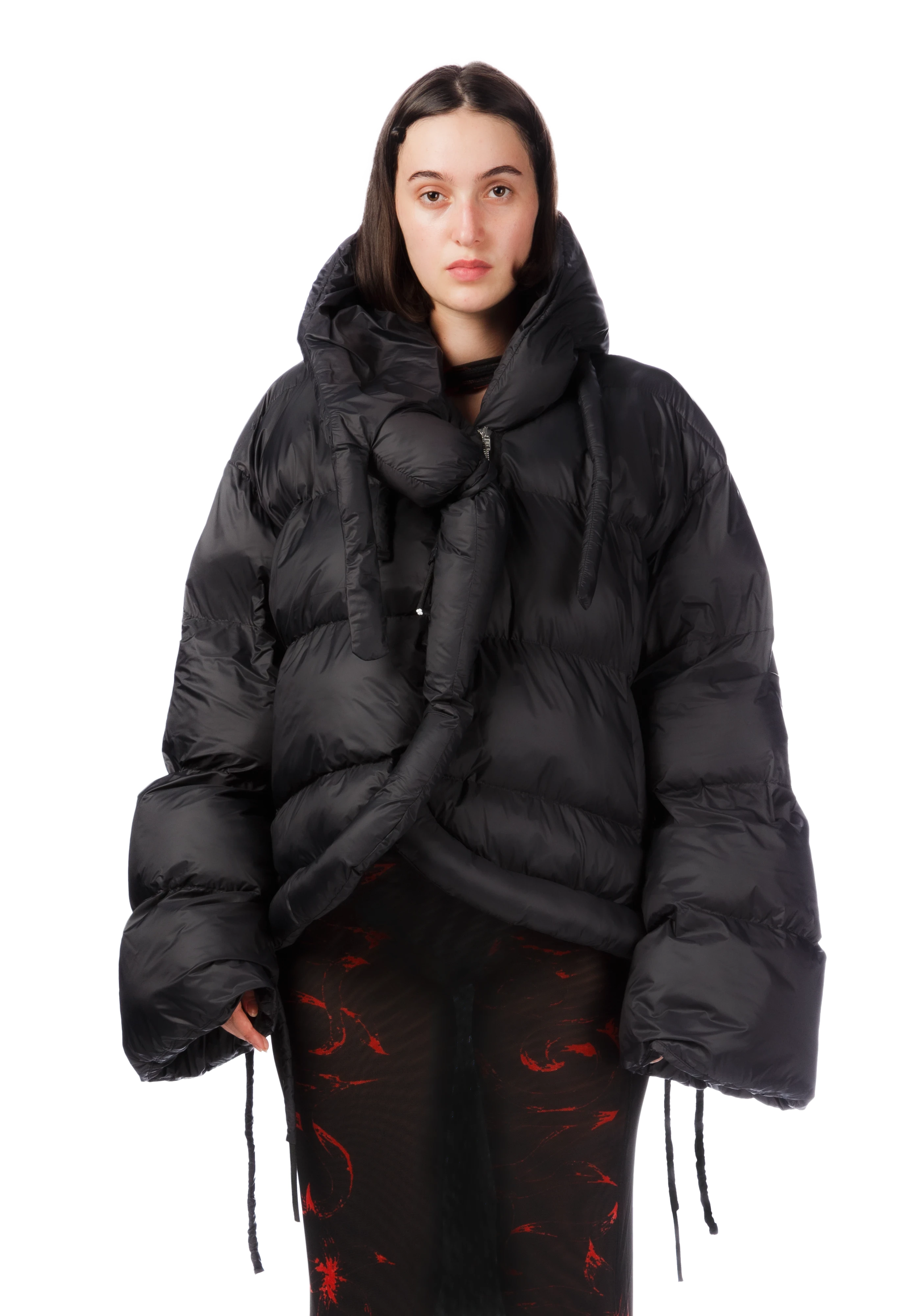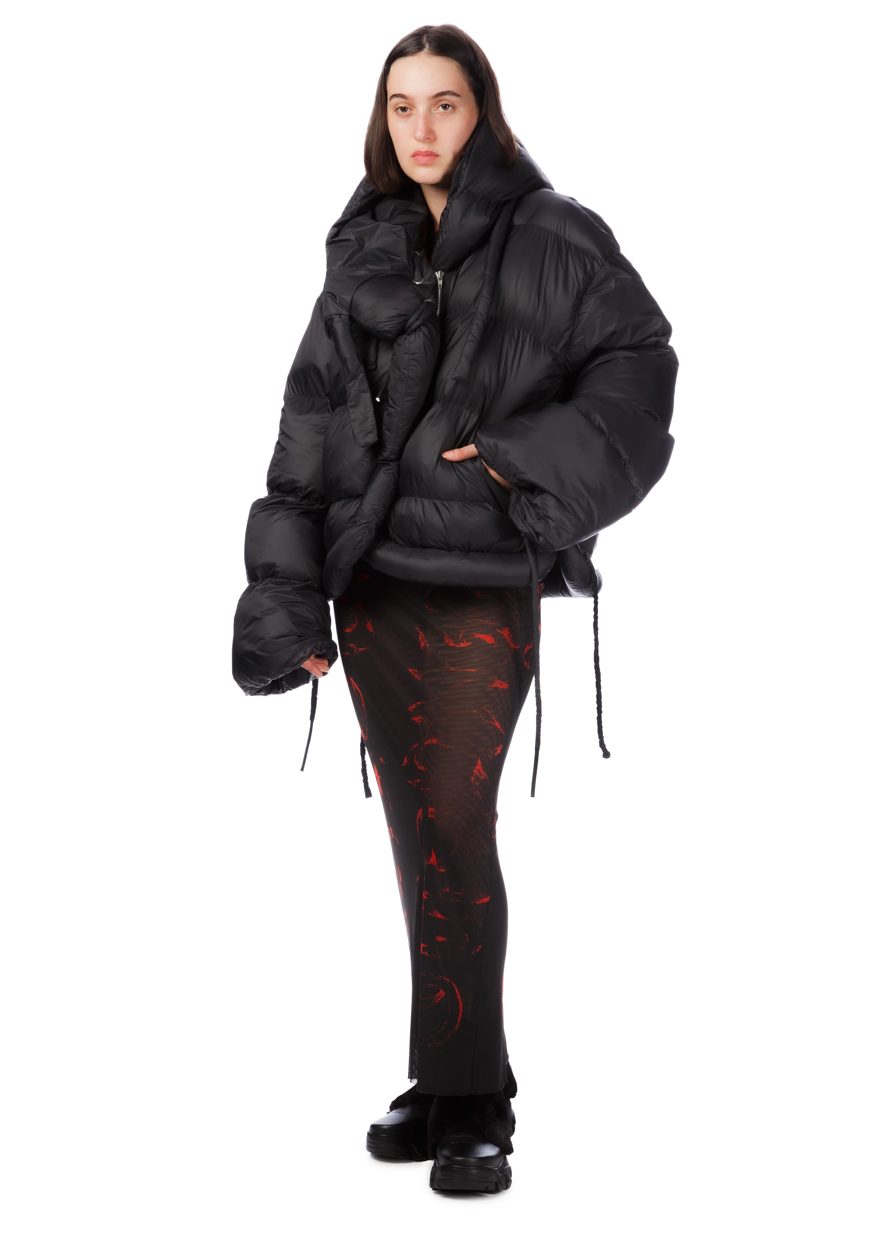 Long-sleeve Ecodown-filled quilted nylon taffeta puffer jacket in black.