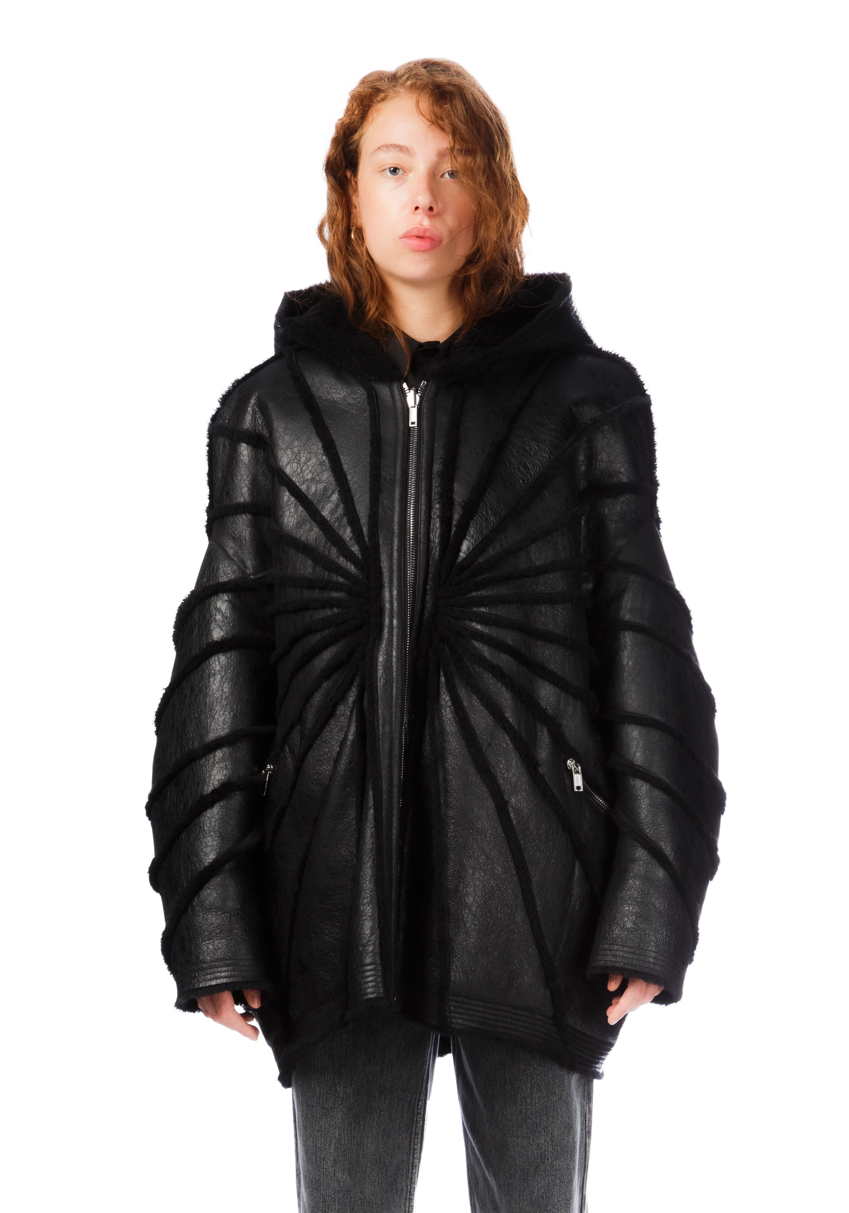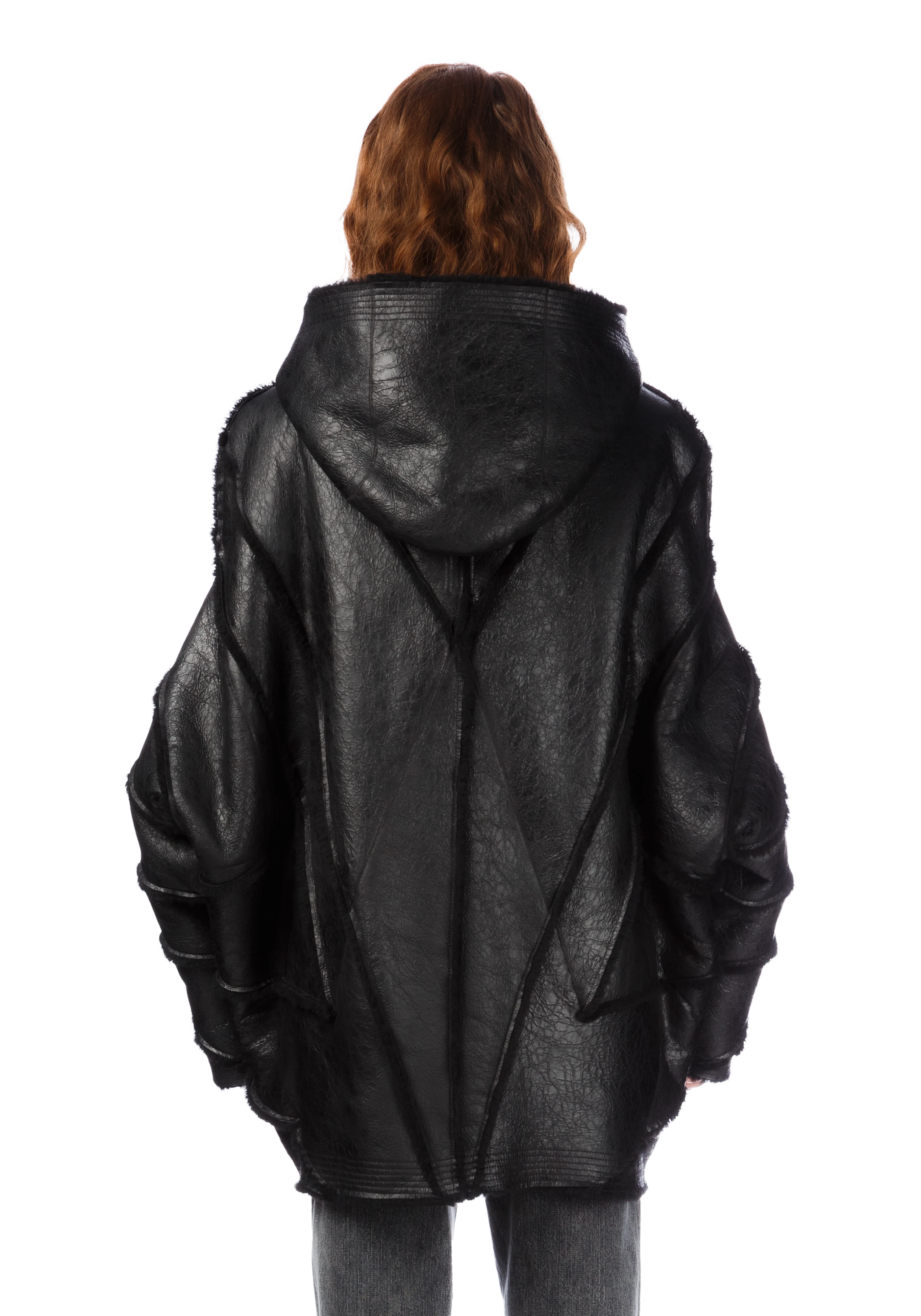 Long-sleeve oversized grained nappa lambskin and shealing jacket in black.