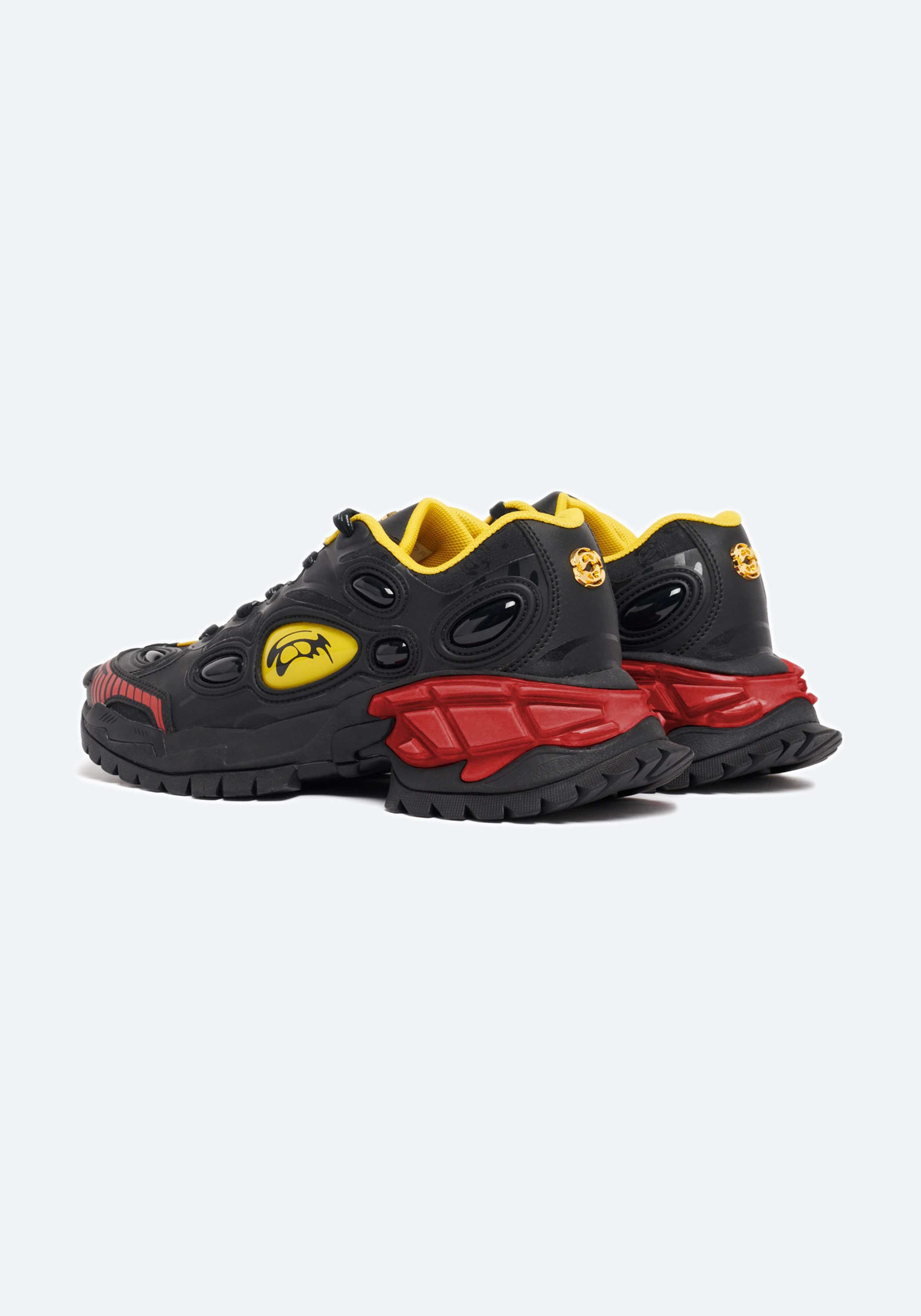 Low-top grained faux-leather sneakers in black.