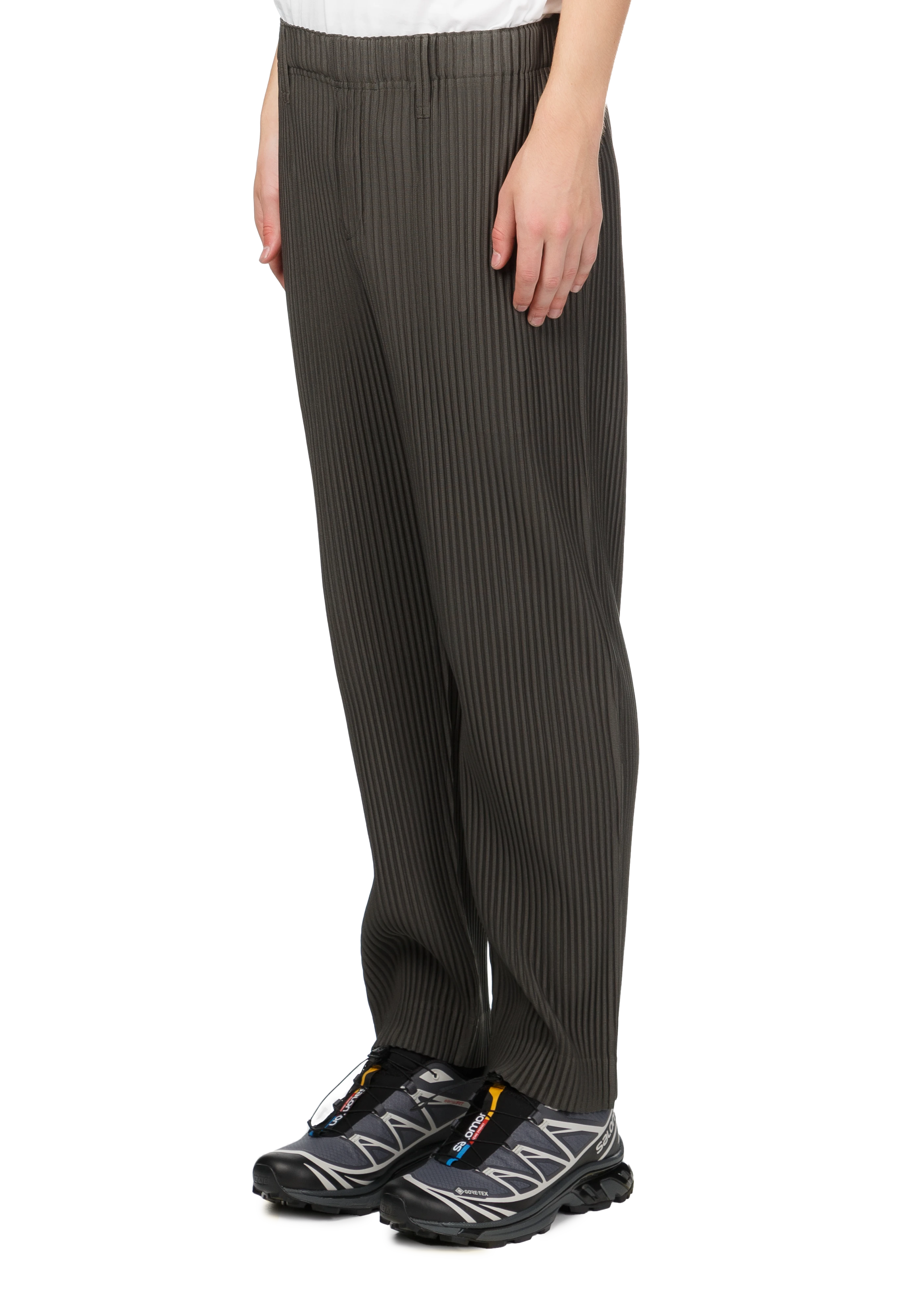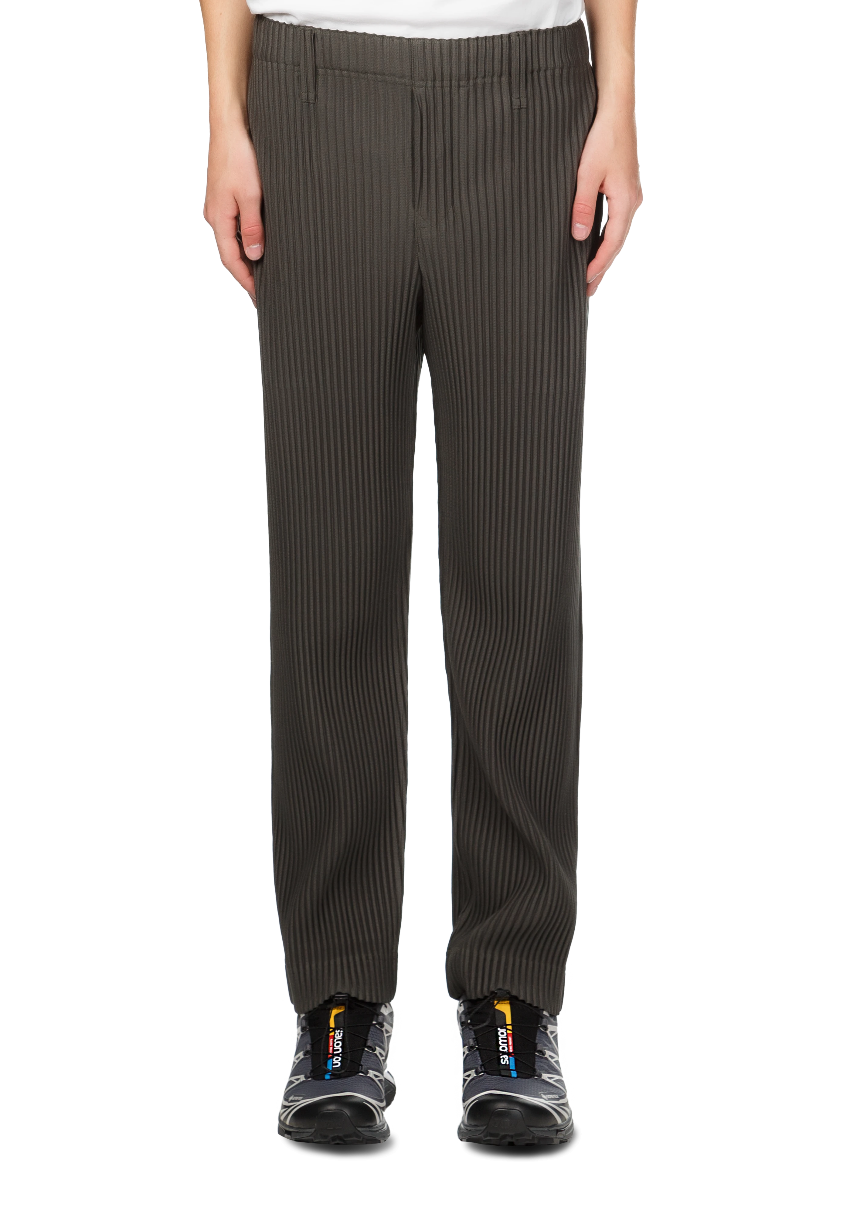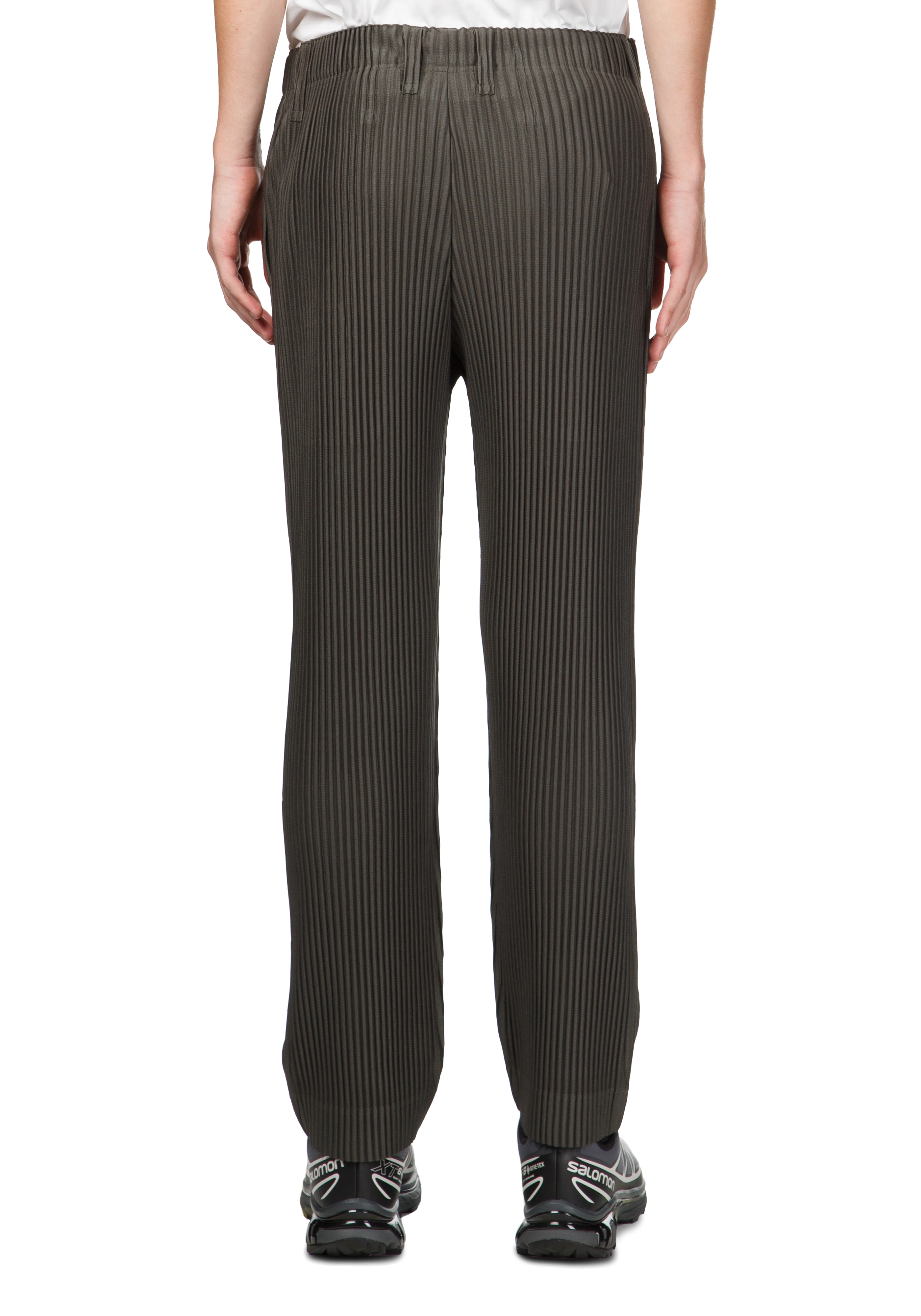 Straight-leg garment-pleated trousers in ebony khaki.