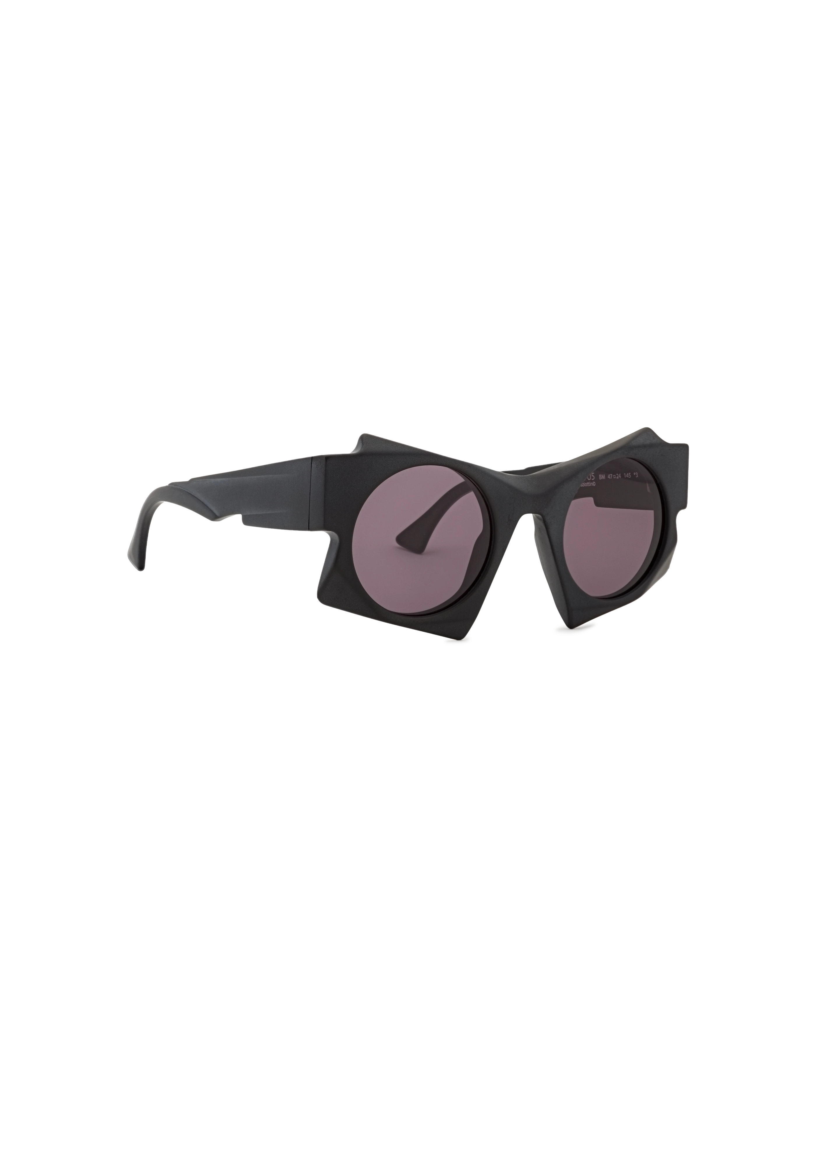 Handcrafted rectangular acetate-frame sunglasses in black matt.