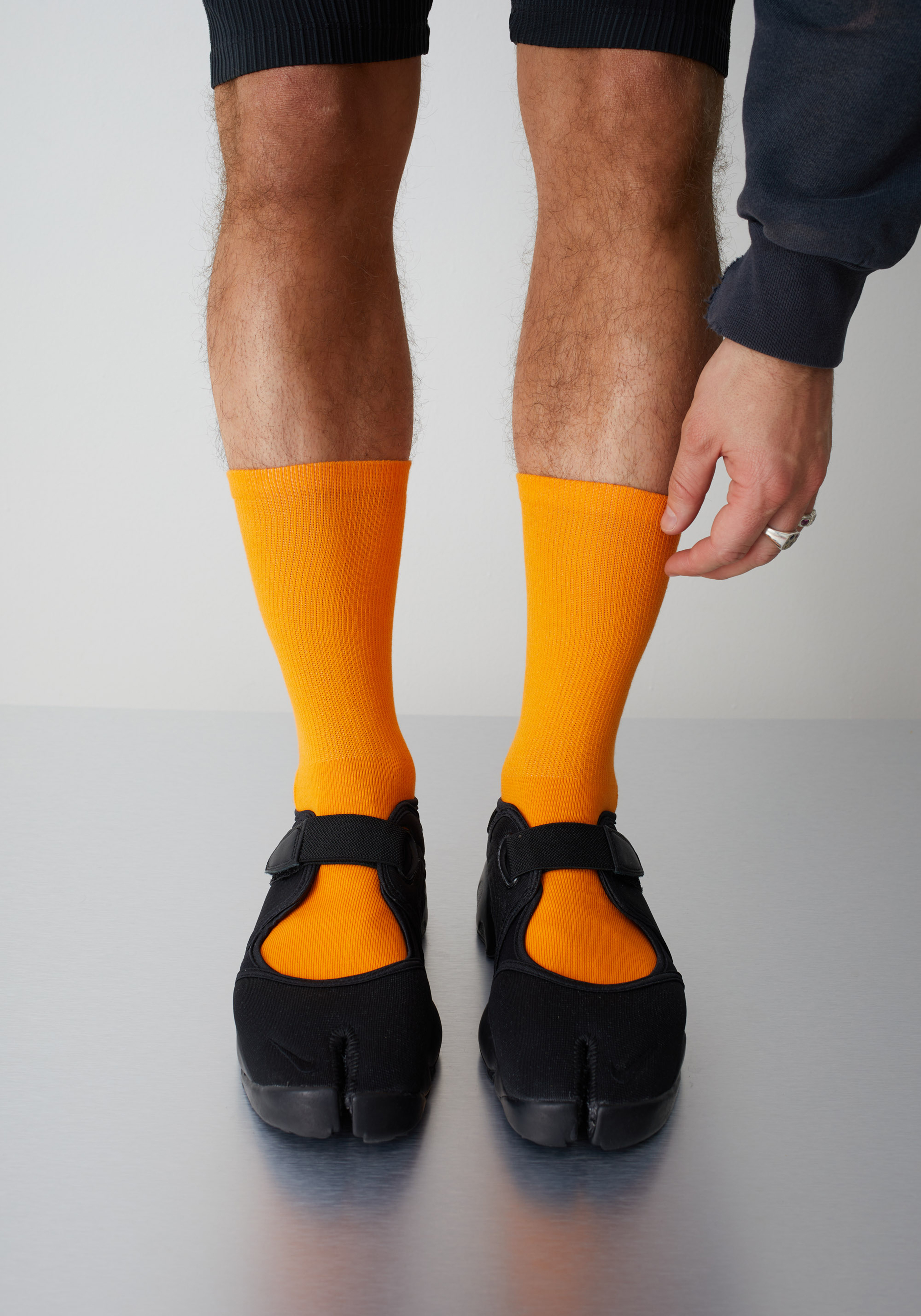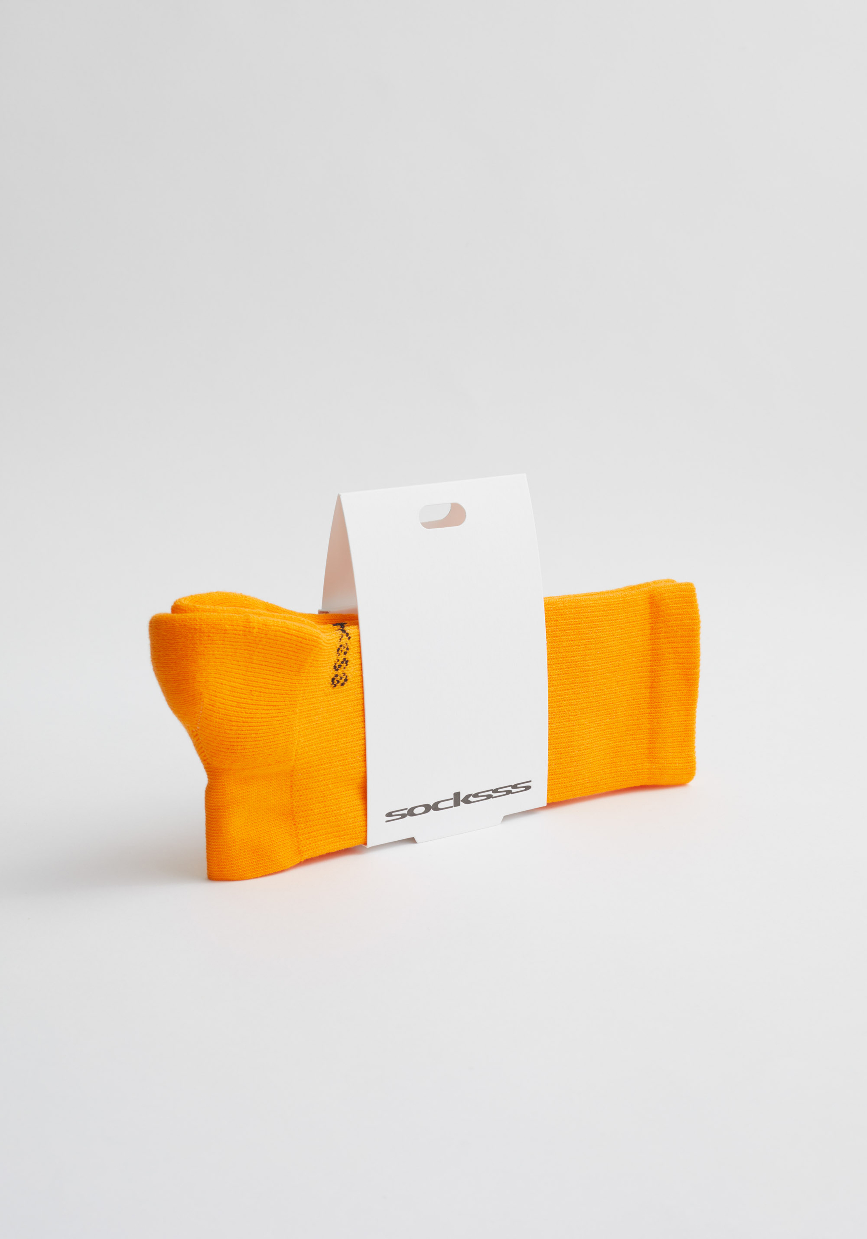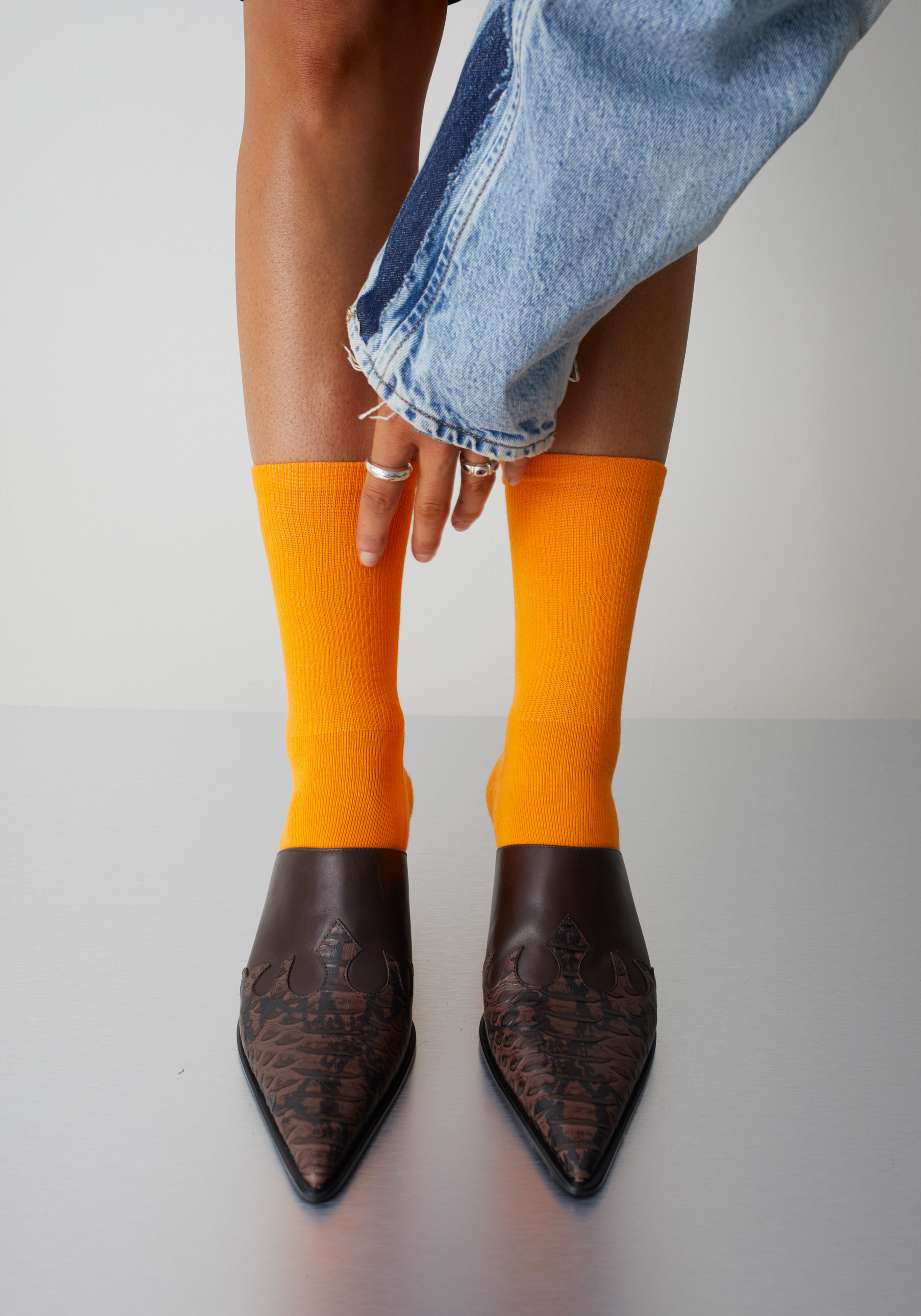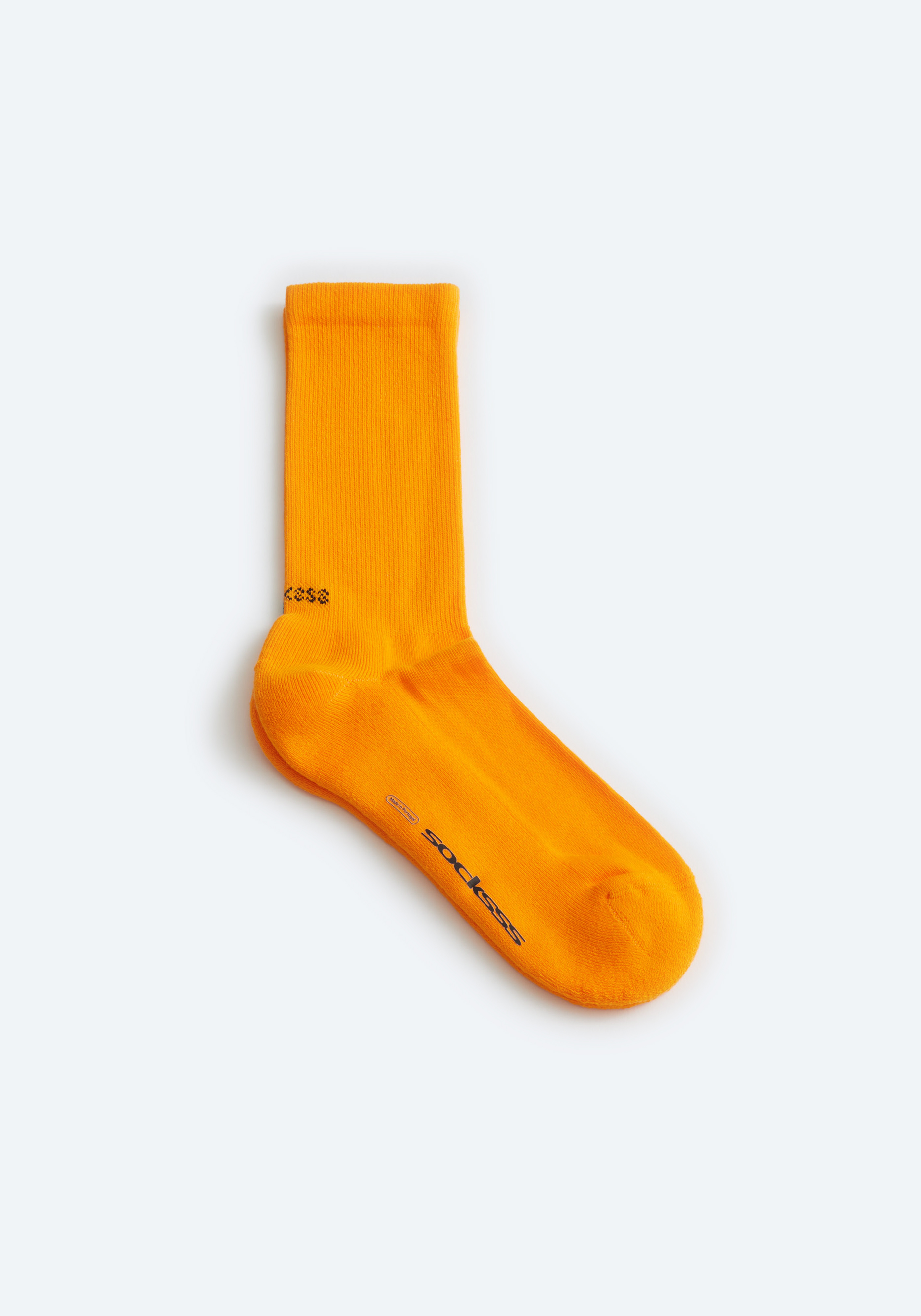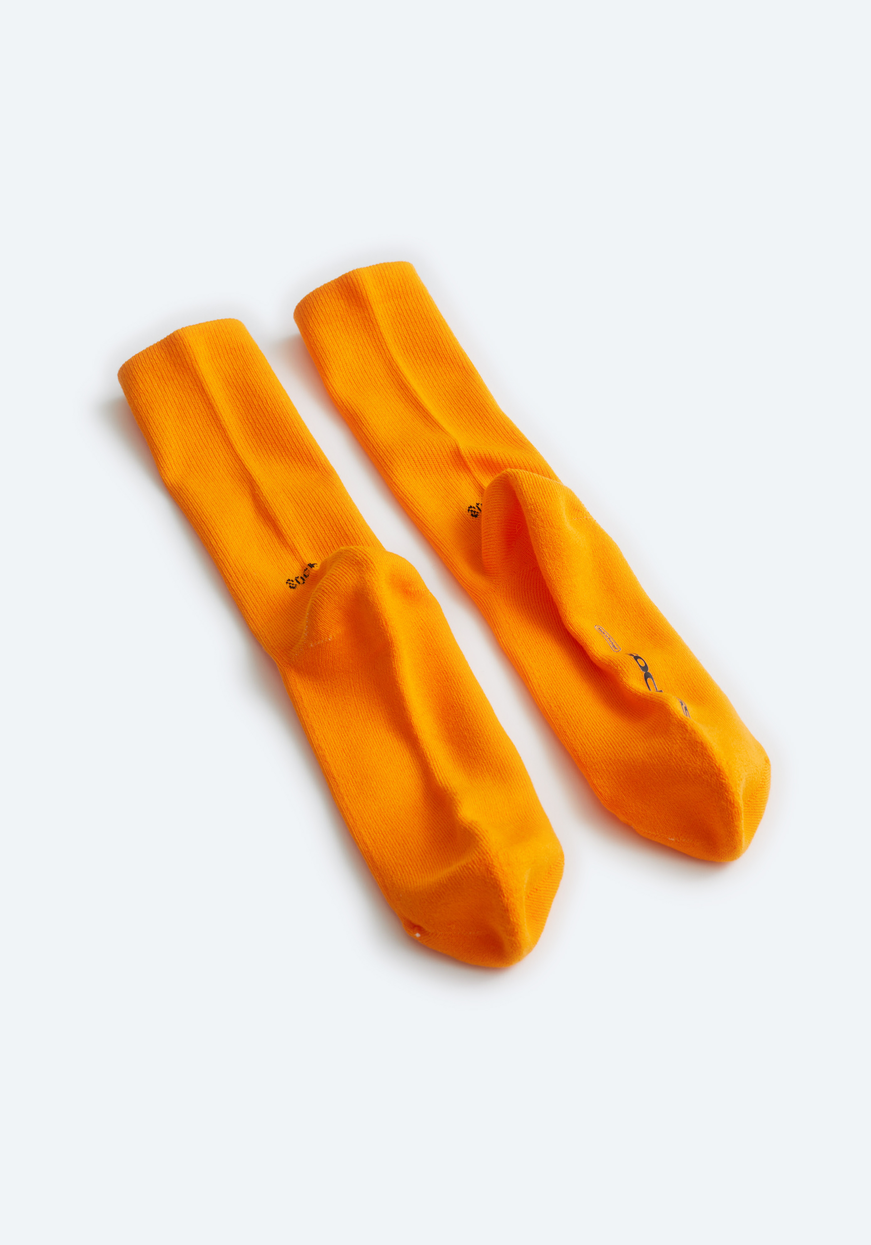 Calf-high knit stretch cotton-and nylon-blend socks in orange.