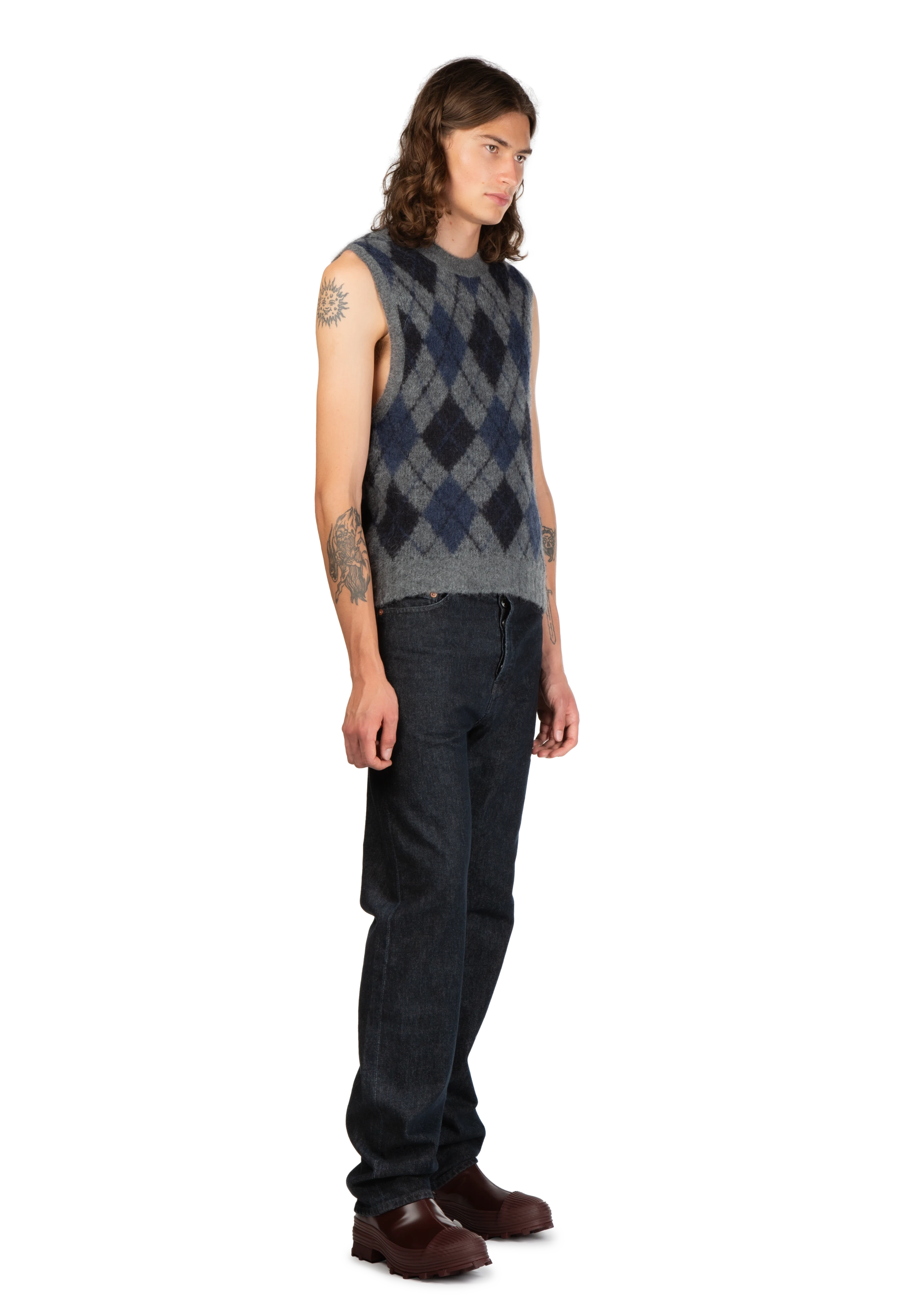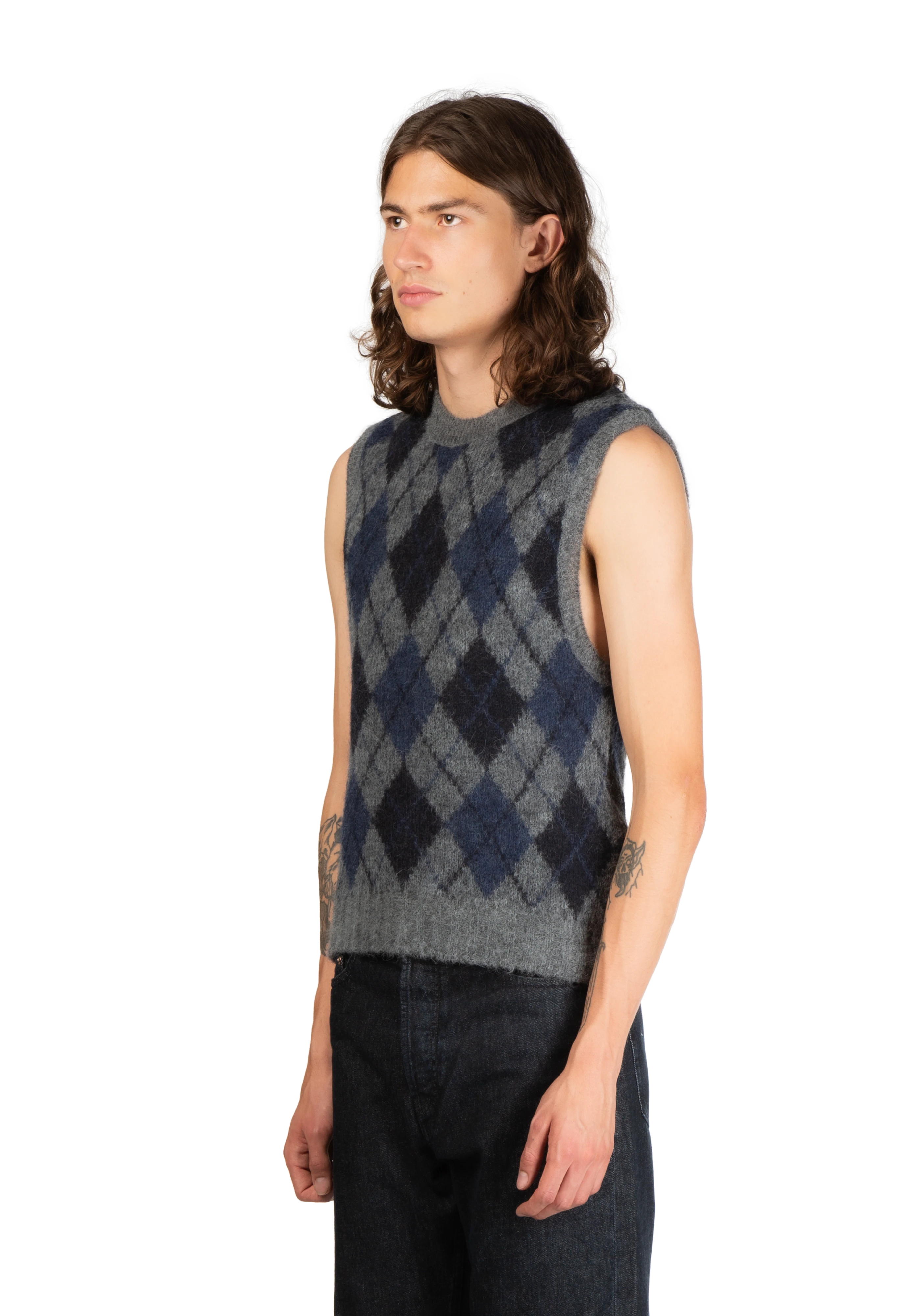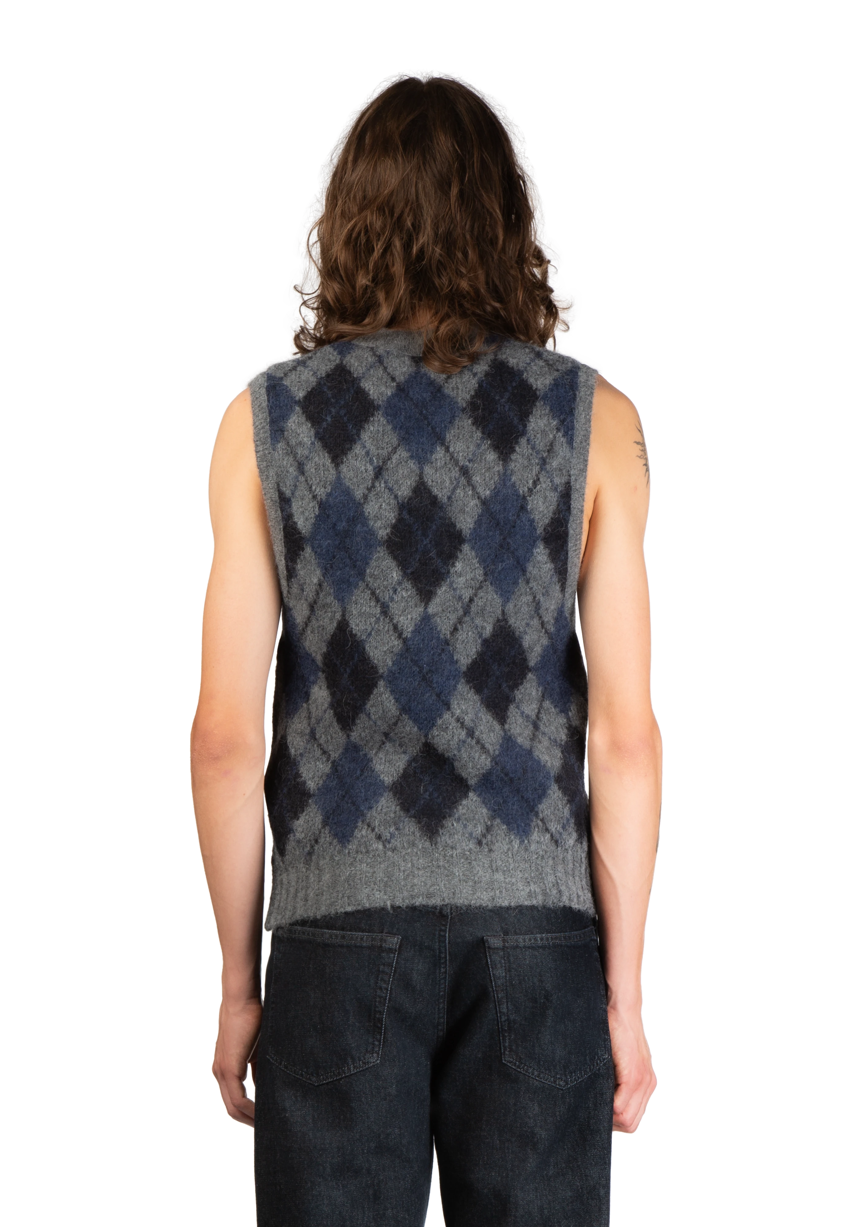 Sleeveless knit alpaca-blend vest in a jacquard argyle pattern.