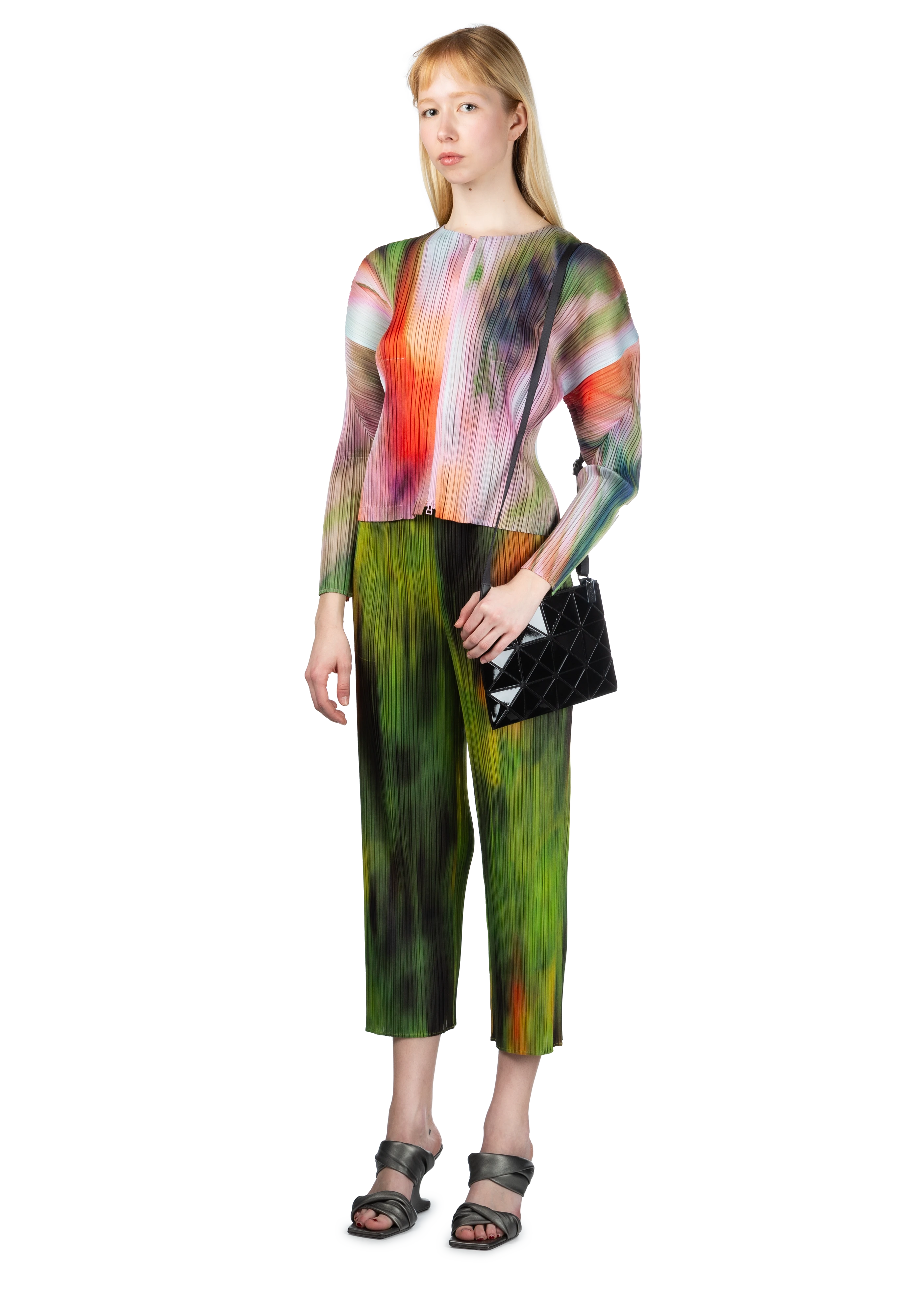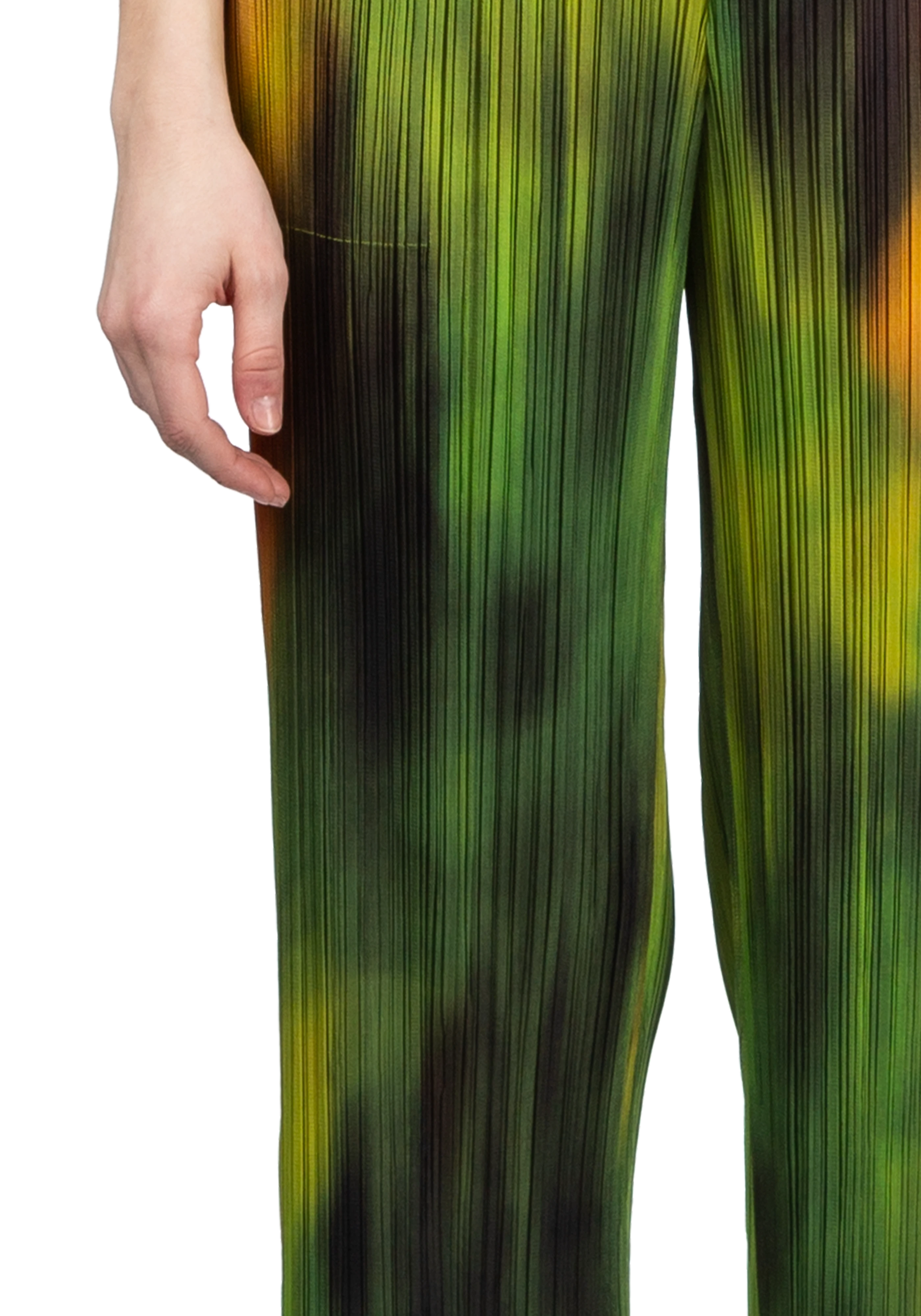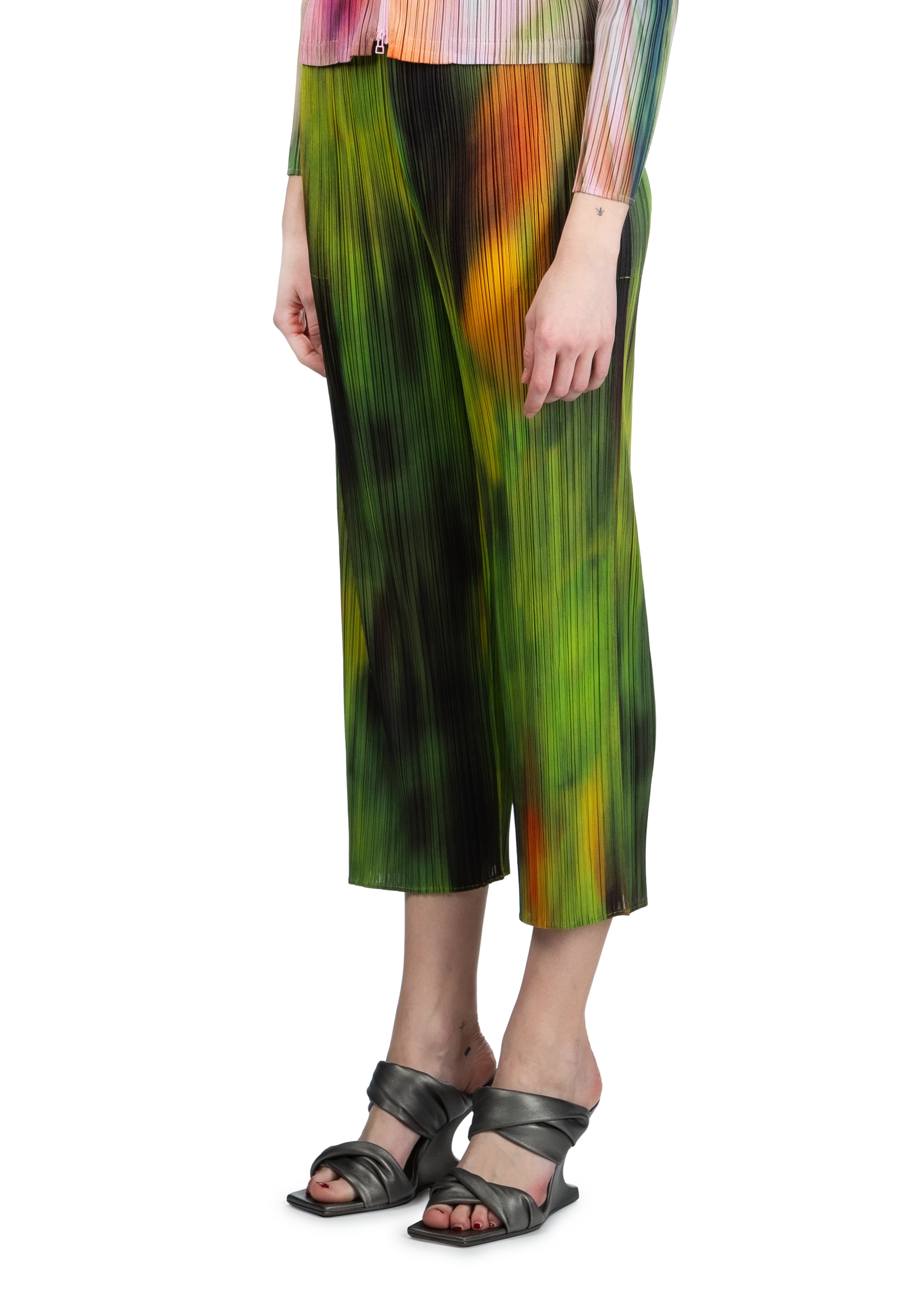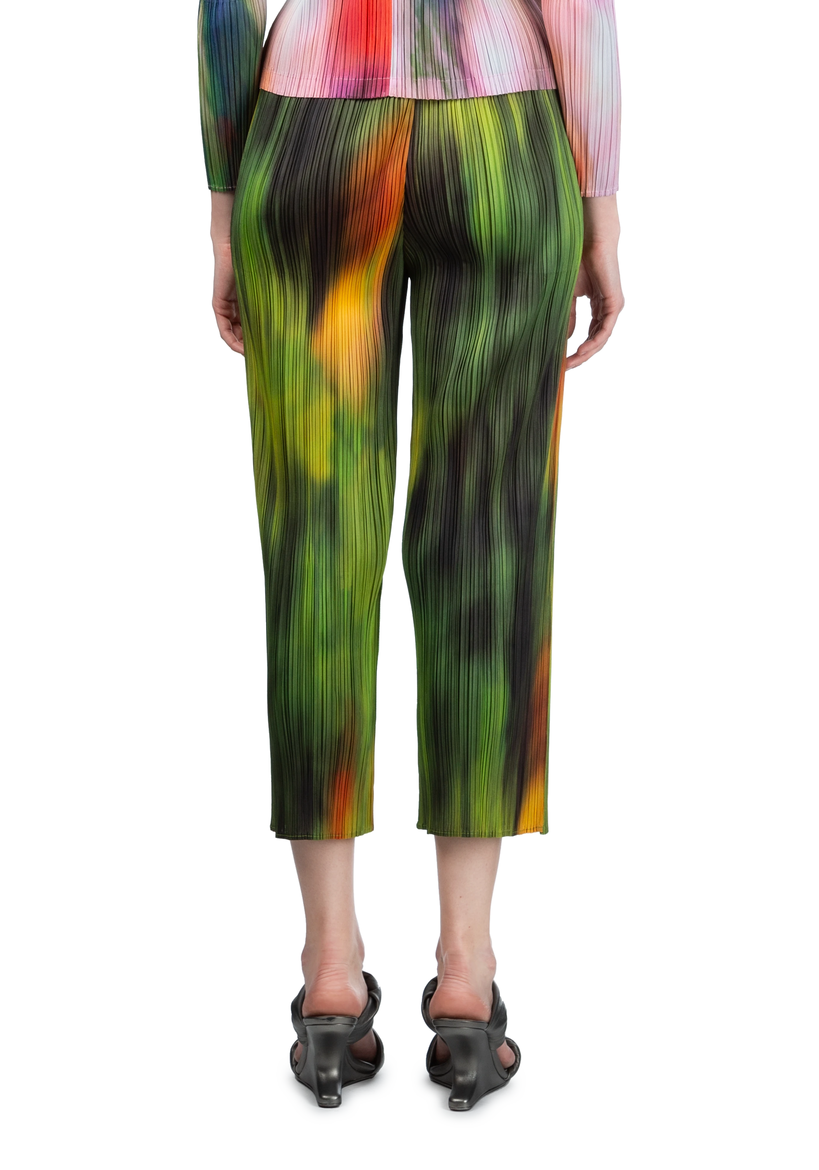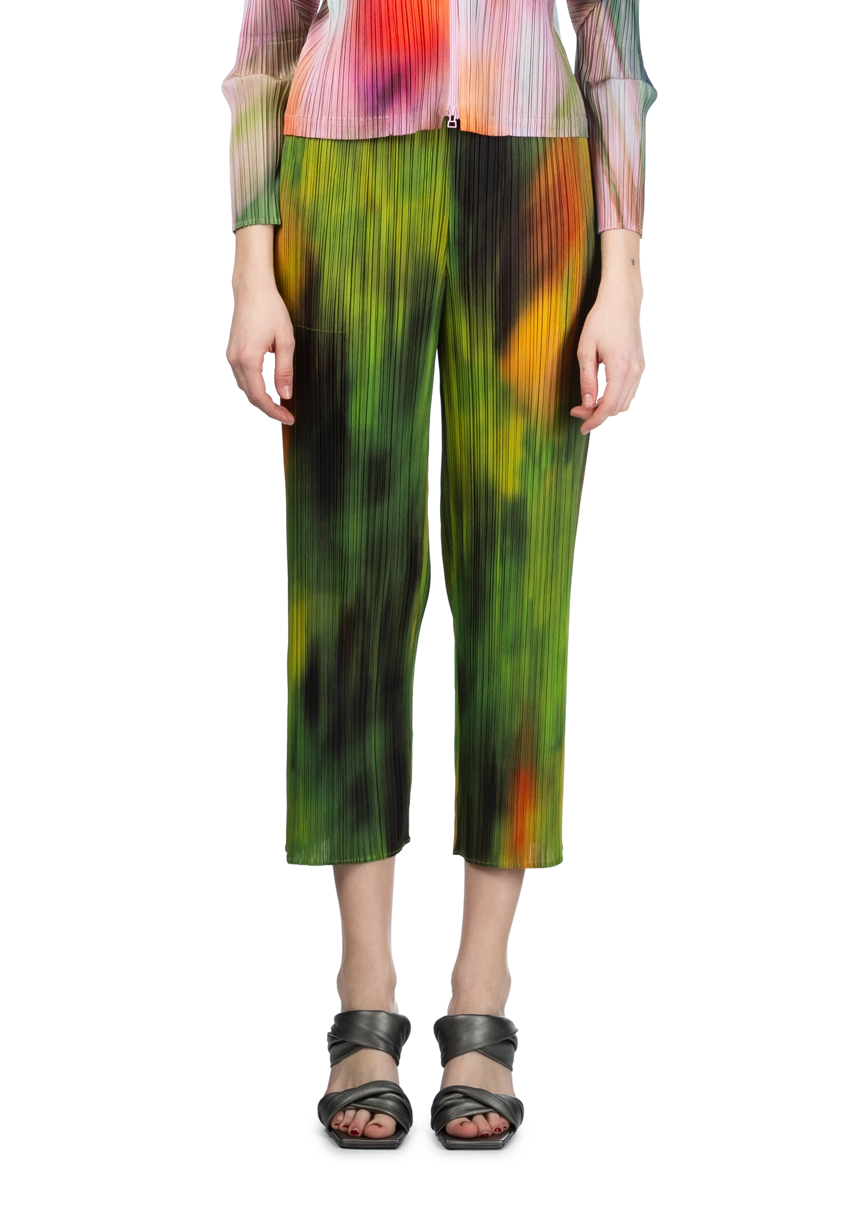 Tapered garment-pleated trousers in multicolor spinach.